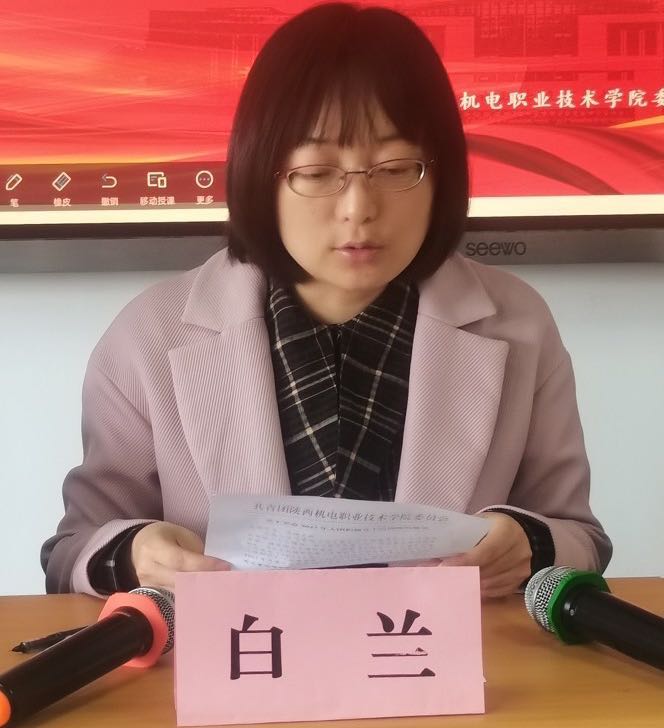 (智能制造學(xué)院團(tuán)總支書記白蘭宣讀《關(guān)于舉辦2023年入團(tuán)積極分子培訓(xùn)班的通知》)
