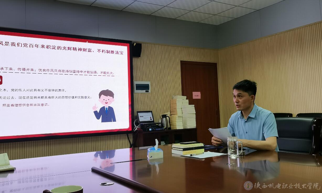 趙爭東同志從“作風(fēng)建設(shè)這一主題貫穿五堂‘第一課’始終”“光榮傳統(tǒng)和優(yōu)良作風(fēng)是我們黨百年來積淀的光輝精神財務(wù)和不朽制勝法寶”“深刻把握新時代作風(fēng)建設(shè)的新內(nèi)涵新要求”“將干部作風(fēng)建設(shè)貫穿于主題教育各項舉措”等四個方面,結(jié)合國內(nèi)外政治經(jīng)濟發(fā)展、黨政部門、教學(xué)單位工作實際進行了講述,重點強調(diào)了如何做好新形勢下的作風(fēng)建設(shè),并將作風(fēng)建設(shè)貫穿于主題教育理論學(xué)習(xí)、調(diào)查研究、推動發(fā)展、檢視整改、建章立制全過程,切實推進主題教育與作風(fēng)建設(shè)統(tǒng)籌協(xié)調(diào)、一體推進。他強調(diào),全體黨員要以此次主題教育為契機,堅持學(xué)思用貫通、知信行統(tǒng)一,把習(xí)近平新時代中國特色社會主義思想轉(zhuǎn)化為堅定理想、錘煉黨性和指導(dǎo)實踐、推動工作的強大力量,切實把作風(fēng)建設(shè)貫穿到主題教育各項舉措中,融入日常教育教學(xué)工作,融入為師生辦實事、為學(xué)校謀發(fā)展的實際行動中,為學(xué)校事業(yè)高質(zhì)量發(fā)展貢獻自己的力量。