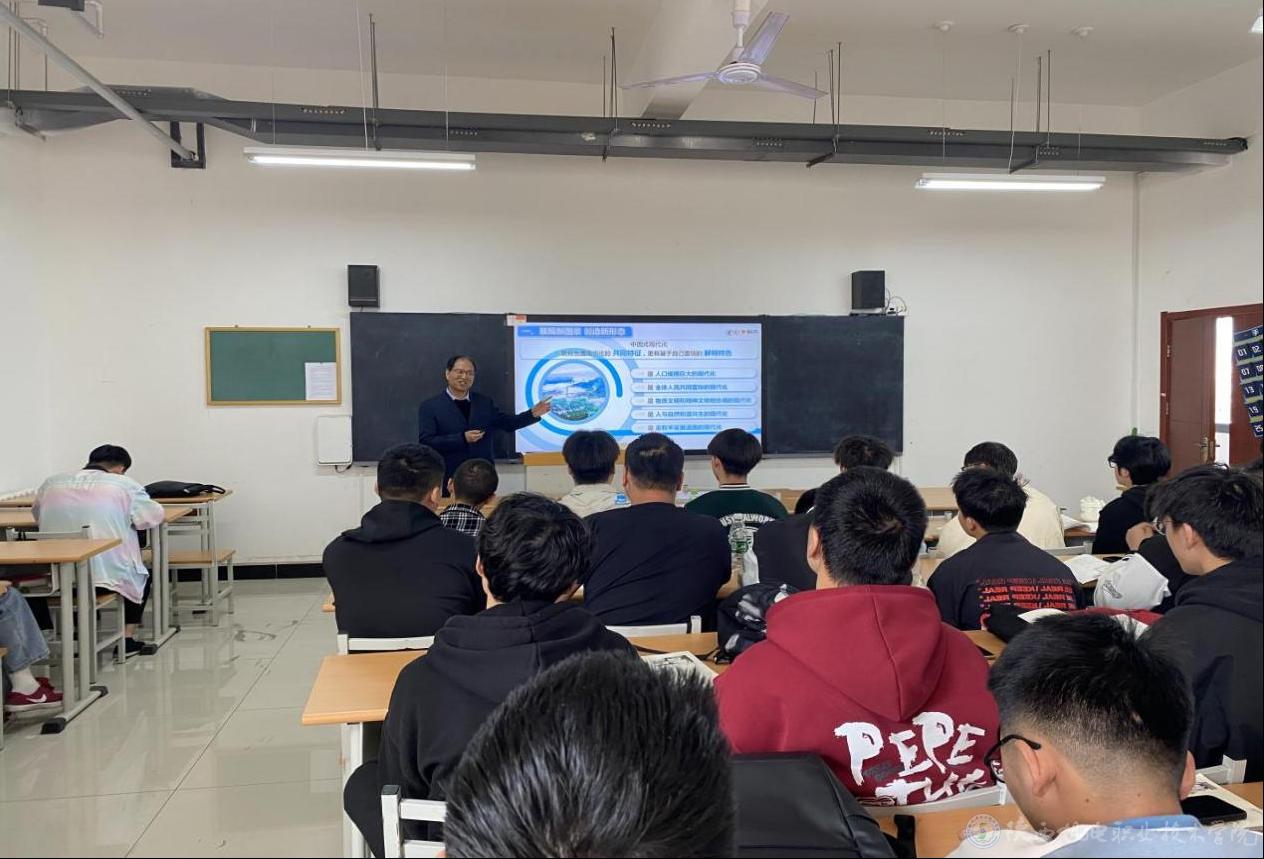 4月8日上午,陜西機(jī)電職業(yè)技術(shù)學(xué)院黨委書(shū)記伊遜智在博學(xué)樓317教室為22智能聯(lián)培1、22機(jī)械制造1合班學(xué)生上形勢(shì)與政策課,講授《讀懂中國(guó)式現(xiàn)代化》專題內(nèi)容。