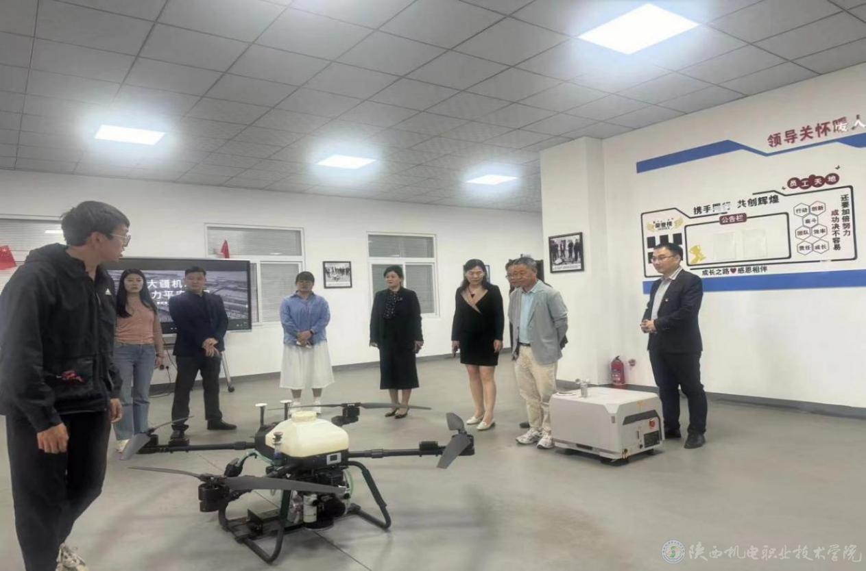 研討會(huì)后,在陳紅梅、王康陪同下,與會(huì)專家、領(lǐng)導(dǎo)一行先后參觀了學(xué)校風(fēng)標(biāo)智造產(chǎn)業(yè)學(xué)院、無(wú)人機(jī)產(chǎn)業(yè)學(xué)院、寶雞搟面皮產(chǎn)業(yè)學(xué)院,感悟我?!皥@中有校 校中有企 校企合作 產(chǎn)教融合”的獨(dú)特辦學(xué)優(yōu)勢(shì),并就大思政課建設(shè)進(jìn)行了交流。