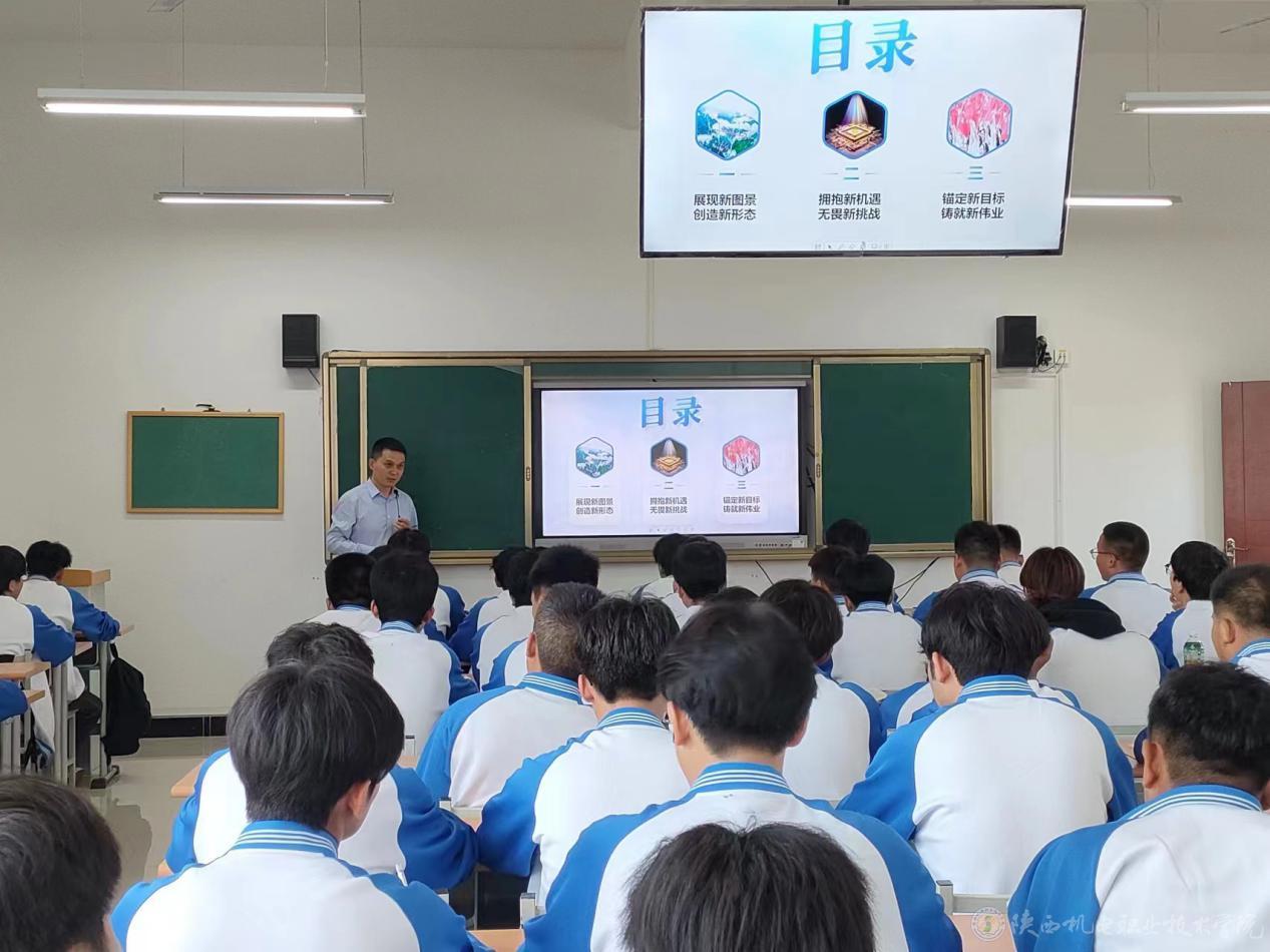 5月9日下午,陜西機電職業(yè)技術(shù)學(xué)院黨委委員、院長助理趙爭東在博學(xué)樓502教室為23鐵道工程3、23鐵道工程4合班學(xué)生上形勢與政策課,講授《讀懂中國式現(xiàn)代化》專題內(nèi)容。