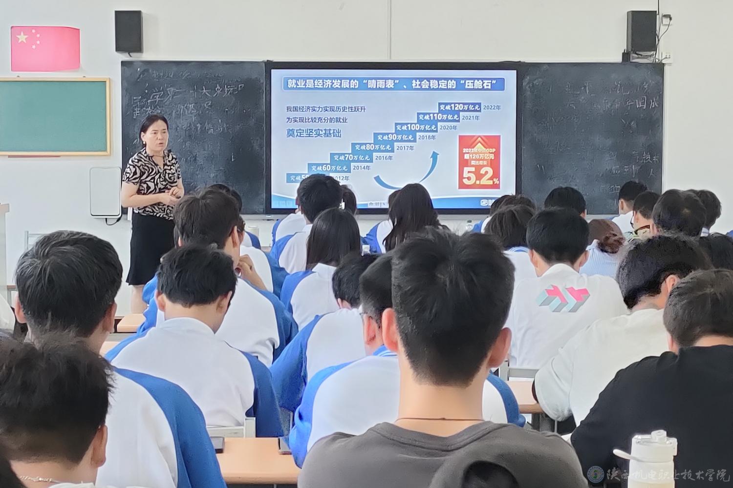 6月24日下午,陜西機(jī)電職業(yè)技術(shù)學(xué)院黨委副書記、紀(jì)委書記陳紅梅教授在博學(xué)樓318教室為23電氣技術(shù)1、2班學(xué)生上形勢與政策課,講授《當(dāng)前就業(yè)形勢與實(shí)施就業(yè)優(yōu)先戰(zhàn)略》專題內(nèi)容。