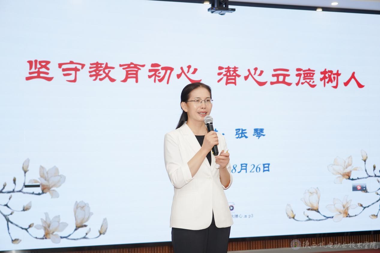 開班儀式上,黨委副書記張琴發(fā)表講話,首先對新進(jìn)教師加入陜西機(jī)電職業(yè)技術(shù)學(xué)院大家庭表示熱烈歡迎,同時介紹了學(xué)校的基本情況、辦學(xué)特色、優(yōu)勢及不足,對大家提出了持之以恒抓學(xué)習(xí)、立德樹人愛學(xué)生、立足崗位作貢獻(xiàn)、正己修身揚正氣、建言獻(xiàn)策促發(fā)展五點殷切希望。