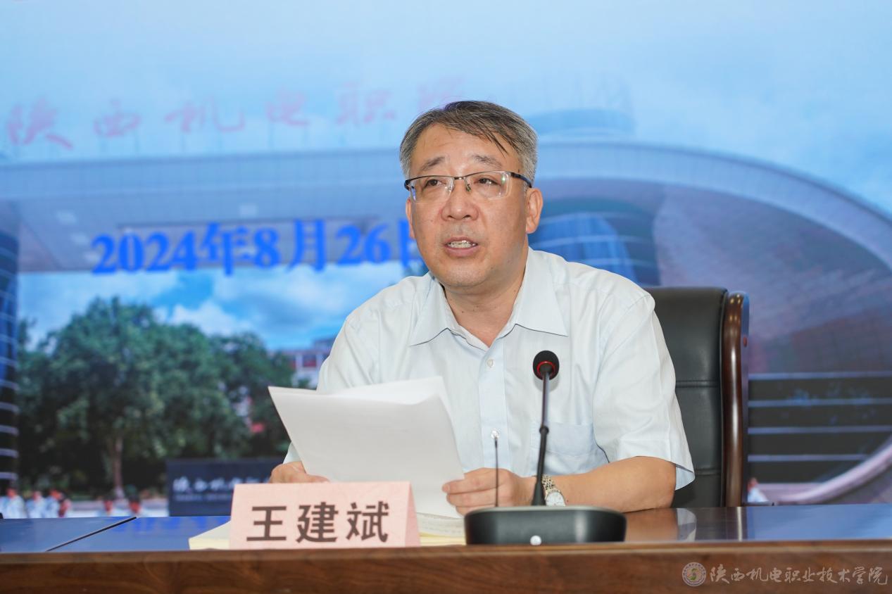 王建斌宣讀《陜西機(jī)電職業(yè)技術(shù)學(xué)院2024年新入職教師崗前培訓(xùn)實施方案》