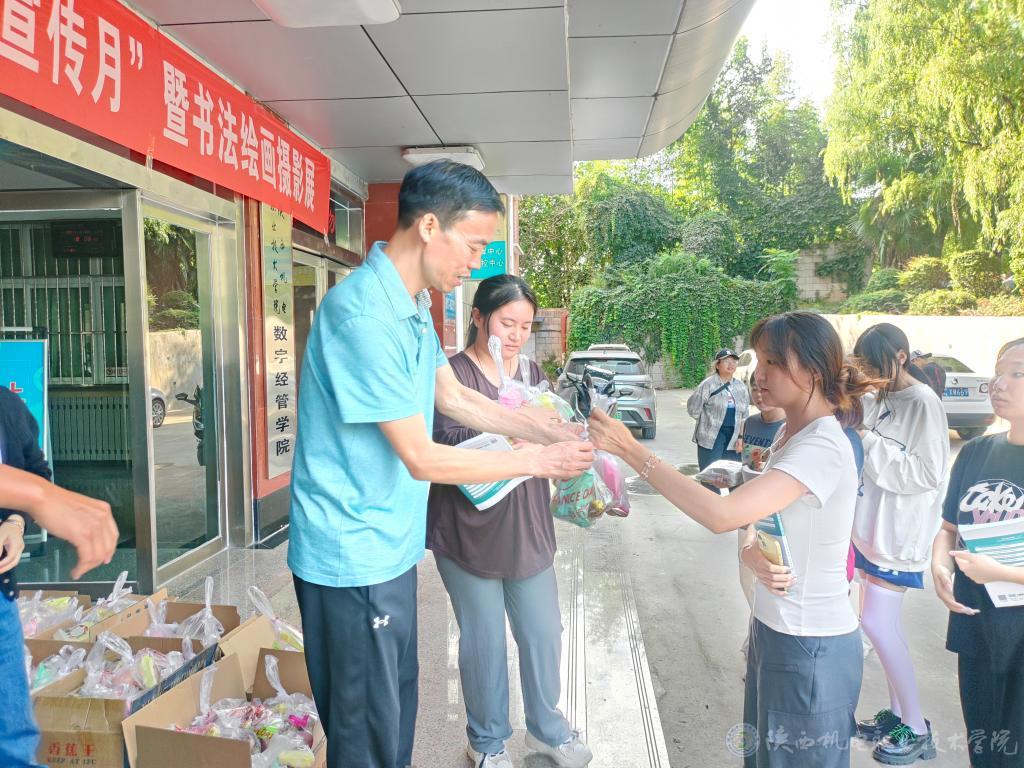 金桂飄香送夏去,一輪滿月送情來。9月17日,陜西機電職業(yè)技術(shù)學(xué)院分別在寶福路校區(qū)、蟠龍校區(qū)開展發(fā)月餅、送祝福活動。校黨委副書記張琴,校團委書記、學(xué)生處副處長王樞在蟠龍校區(qū)參加活動。各學(xué)院黨支部書記、院長,學(xué)院學(xué)生辦公室主任,各班輔導(dǎo)員、班主任參加活動,一道為遠(yuǎn)離家鄉(xiāng)、留校過節(jié)的學(xué)子們送去了家的溫暖與節(jié)日的祝福。