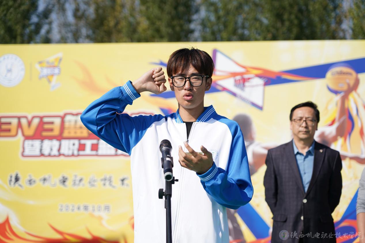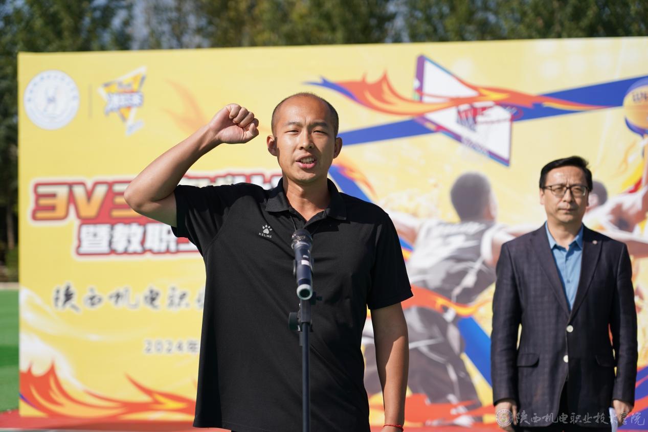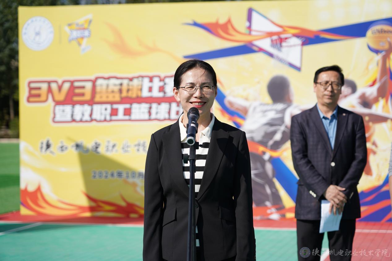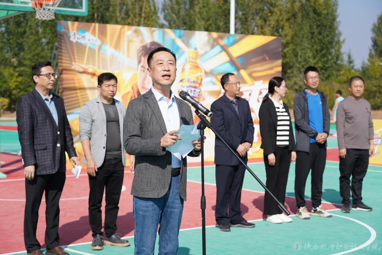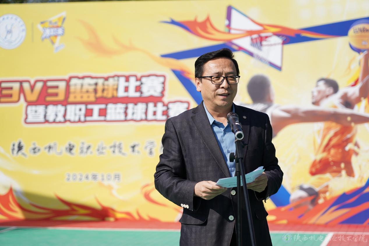 為進(jìn)一步豐富校園文化生活,增強(qiáng)學(xué)生體質(zhì),培養(yǎng)團(tuán)隊(duì)合作精神,10月15日下午,陜西機(jī)電職業(yè)技術(shù)學(xué)院在蟠龍校區(qū)成功舉辦了一場(chǎng)別開(kāi)生面的3v3籃球賽,本次比賽共57支隊(duì)伍報(bào)名,228名隊(duì)員參加。此次賽事不僅為學(xué)生們搭建了一個(gè)充分展示自我風(fēng)采、勇于挑戰(zhàn)自我的舞臺(tái),更極大地激發(fā)了大家對(duì)籃球運(yùn)動(dòng)的濃厚興趣與對(duì)體育精神的崇高追求,讓青春的活力與激情在籃球場(chǎng)上盡情綻放。黨委副書(shū)記、院長(zhǎng)向紀(jì)明,黨委副書(shū)記張琴,黨委委員、副院長(zhǎng)張克,黨委委員、宣傳部部長(zhǎng)李明以及校團(tuán)委、交通運(yùn)輸學(xué)院領(lǐng)導(dǎo)出席開(kāi)幕式。活動(dòng)由基礎(chǔ)部(體育部)黨支部書(shū)記、副部長(zhǎng)李明主持。