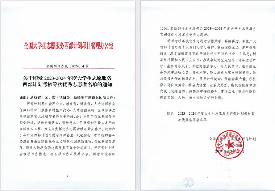 近年來,學(xué)校積極響應(yīng)黨中央號召,招募西部計(jì)劃志愿者,志愿者們在“小我”融入“大我”中見初心,在深入基層實(shí)踐中長本領(lǐng),在服務(wù)社會(huì)高質(zhì)量發(fā)展中建新功,大學(xué)生志愿服務(wù)西部計(jì)劃項(xiàng)目已成為學(xué)校實(shí)踐育人的重要平臺之一。