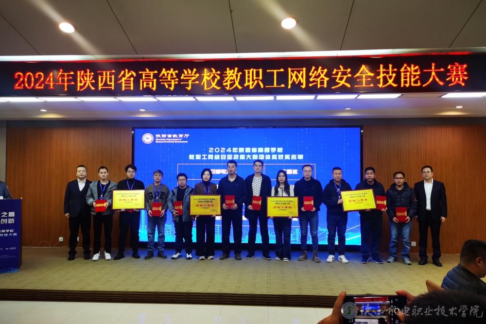 11月29日,2024年首屆陜西省高等學校教職工網(wǎng)絡(luò)安全技能大賽決賽在西安郵電大學長安校區(qū)學術(shù)交流中心圓滿舉行。經(jīng)過激烈角逐,由陜西機電職業(yè)技術(shù)學院數(shù)據(jù)信息中心主任徐建領(lǐng)隊,數(shù)據(jù)信息中心綜合科科長王仲科,電子信息學院教師王軒、嚴軍峰三位教師組成的隊伍脫穎而出,榮獲高職組第二名,斬獲團體二等獎;王軒還榮獲了個人競賽三等獎的好成績。