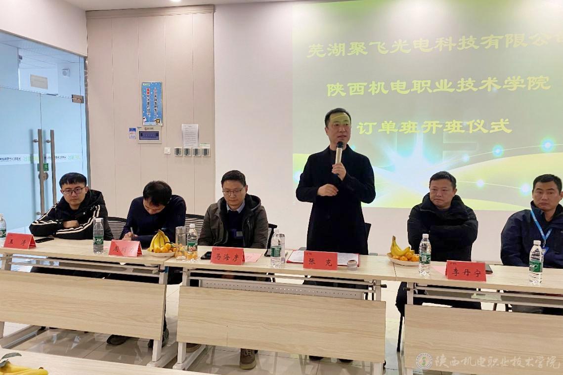 12月11日,聚飛光電訂單班開班儀式在安徽蕪湖聚飛光電科技有限公司舉行,陜西機(jī)電職業(yè)技術(shù)學(xué)院黨委委員、副院長張克出席儀式。