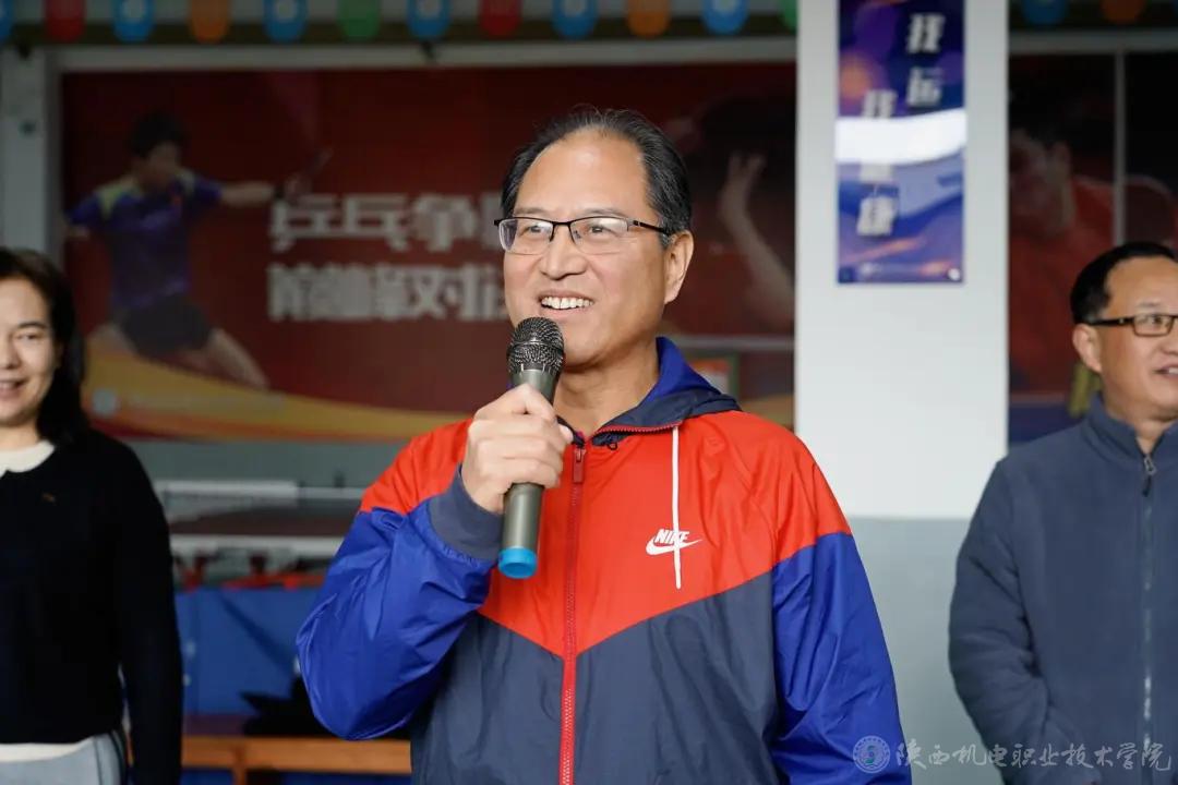 12月26日下午,陜西機電職業(yè)技術(shù)學(xué)院2024年“迎新年·慶元旦”暨第二屆教職工乒乓球賽開幕式在寶福路校區(qū)乒乓球館開幕。校黨委書記伊遜智,黨委副書記、院長向紀(jì)明,黨委副書記、紀(jì)委書記陳紅梅,黨委委員、宣傳部部長、工會主席李明,黨政辦公室副主任、工會副主席康健出席開幕式?;A(chǔ)部(體育部)部長李明主持開幕式。