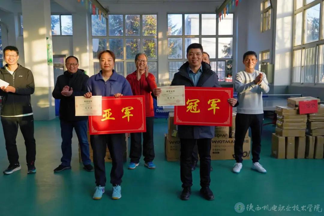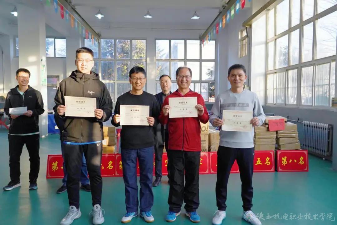 教職工乒乓球賽個人賽獲得男子一等獎的是王文忠、陳峰、蔡鵬飛、張小輝;獲得男子二等獎的是伊遜智、張澤寧、趙爭東、賈九榮;獲得男子三等獎的是周東、李英儒、張喆、康小斌、楊科、徐建、何京浩、張曉偉。
