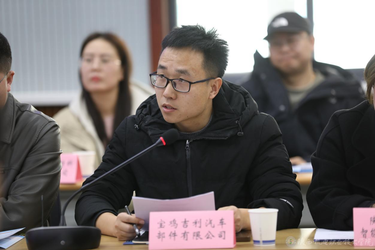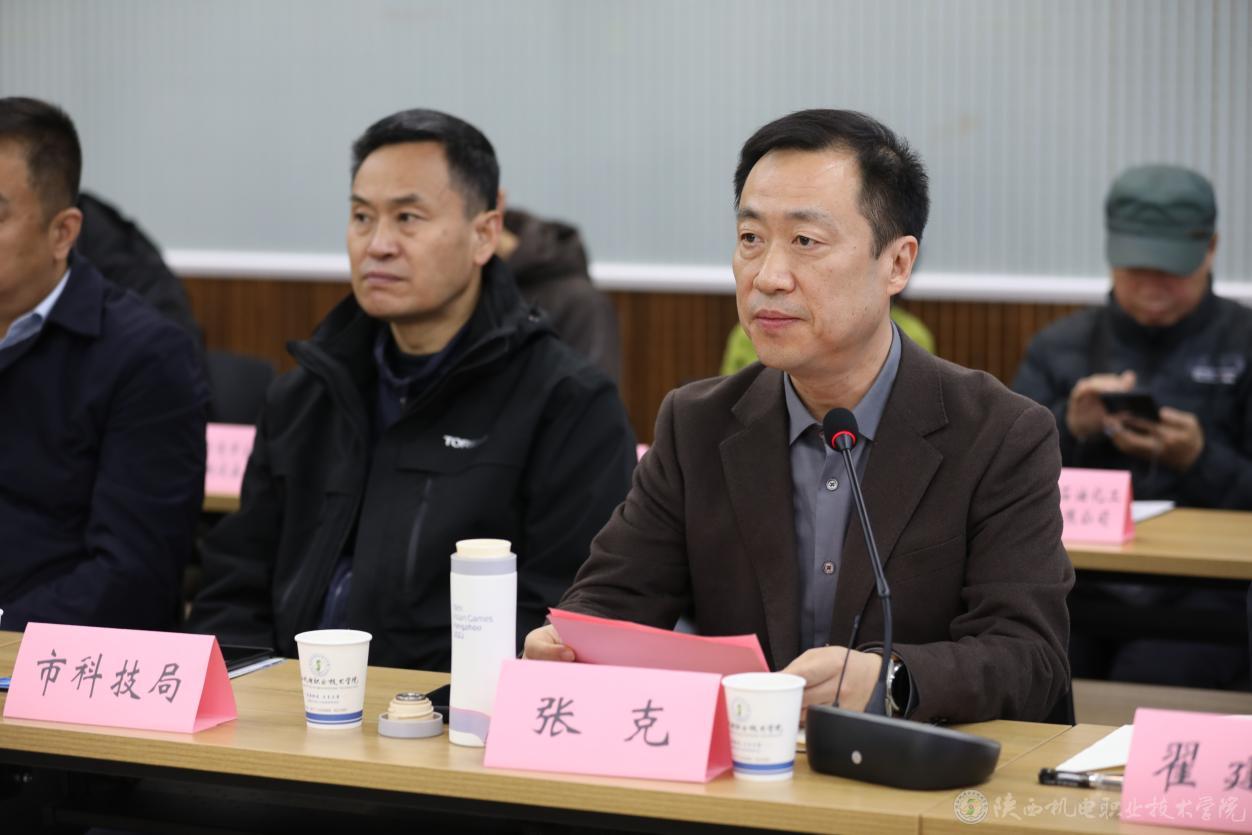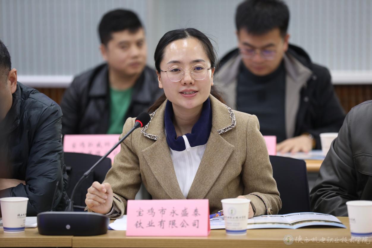 張克以《產(chǎn)城互融、園校一體,產(chǎn)-教-城共生融合發(fā)展》為題,作了學(xué)校校企合作專項(xiàng)匯報(bào);寶雞市永盛泰鈦業(yè)有限公司、寶雞吉利汽車部件有限公司、陜西壹控智飛智能科技有限公司、秦川機(jī)床工具集團(tuán)有限公司、陜西渭河工模具有限公司等五家企業(yè)做了專題發(fā)言;參會(huì)代表圍繞技術(shù)合作需求和人才需求等情況進(jìn)行了討論發(fā)言。