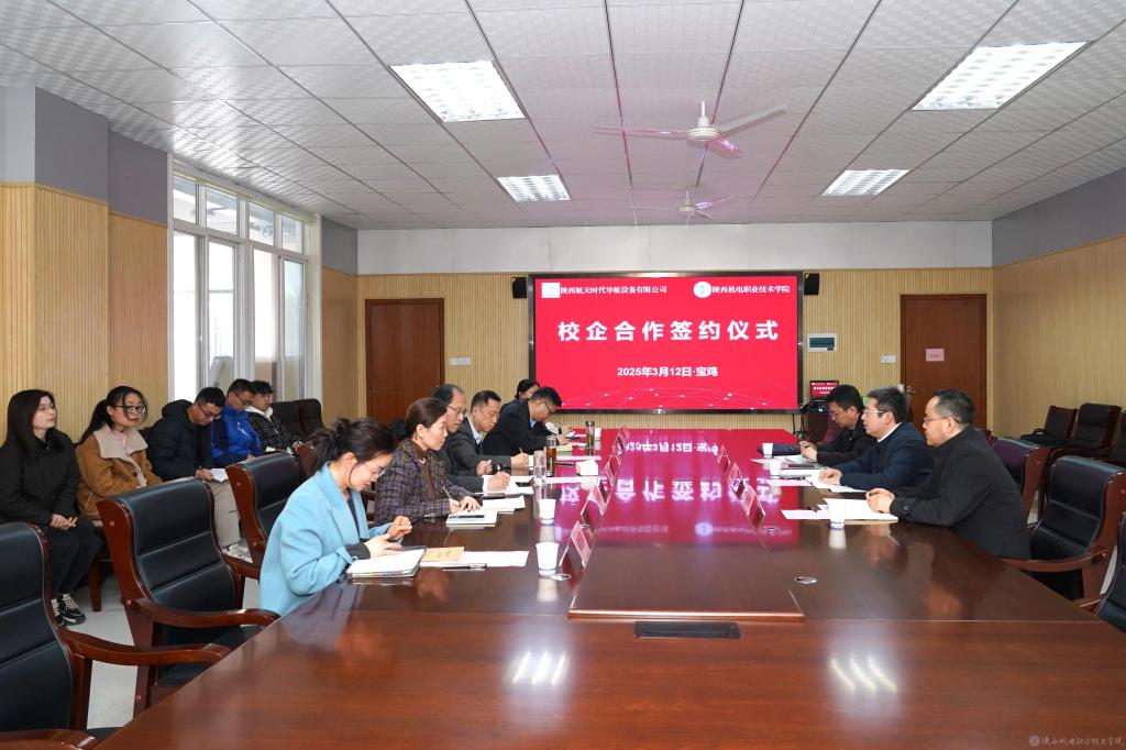 3月12日下午,陜西機(jī)電職業(yè)技術(shù)學(xué)院與陜西航天時(shí)代導(dǎo)航設(shè)備有限公司校企合作簽約儀式在校圖書館會(huì)議室隆重舉行。陜西航天時(shí)代導(dǎo)航設(shè)備有限公司黨委副書記、紀(jì)委書記兼工會(huì)主席趙晨凱,人力資源部部長帖選哲、人力資源部招聘主管周小強(qiáng),陜西機(jī)電職業(yè)技術(shù)學(xué)院黨委書記伊遜智,黨委委員、副院長張克出席簽約儀式。會(huì)議由校企合作處處長白娟娟主持。