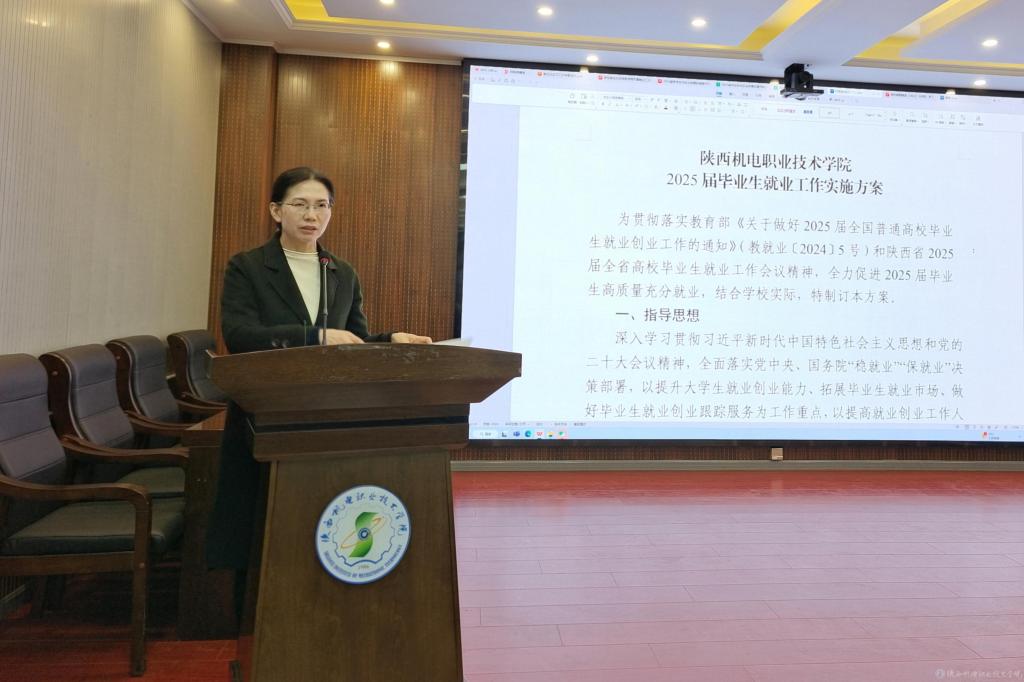 會上,招生就業(yè)處處長朱云潔通報2024年就業(yè)工作情況,并從招聘會開展、訪企拓崗、就業(yè)材料收集和困難群體幫扶等方面安排部署2025年就業(yè)工作。