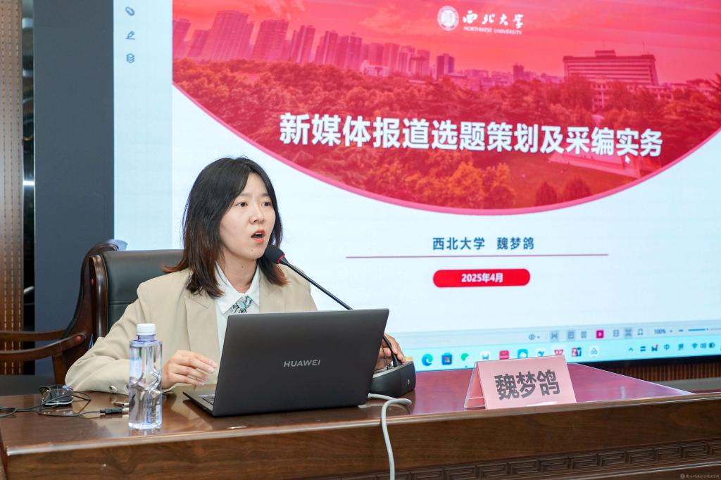 為進一步強化學校新聞通訊員隊伍建設(shè),提高通訊員的新聞策劃、采編水平,推進新聞宣傳工作上新臺階,4月9日,學校特邀西北大學新媒體中心主任魏夢鴿,在博學樓111會議室作《新聞報道選題策劃及采編實務(wù)》專題培訓。全校教師通訊員,網(wǎng)站、新媒體平臺負責人,新媒體中心學生參加培訓。培訓由黨委委員、黨委宣傳部部長李明主持。