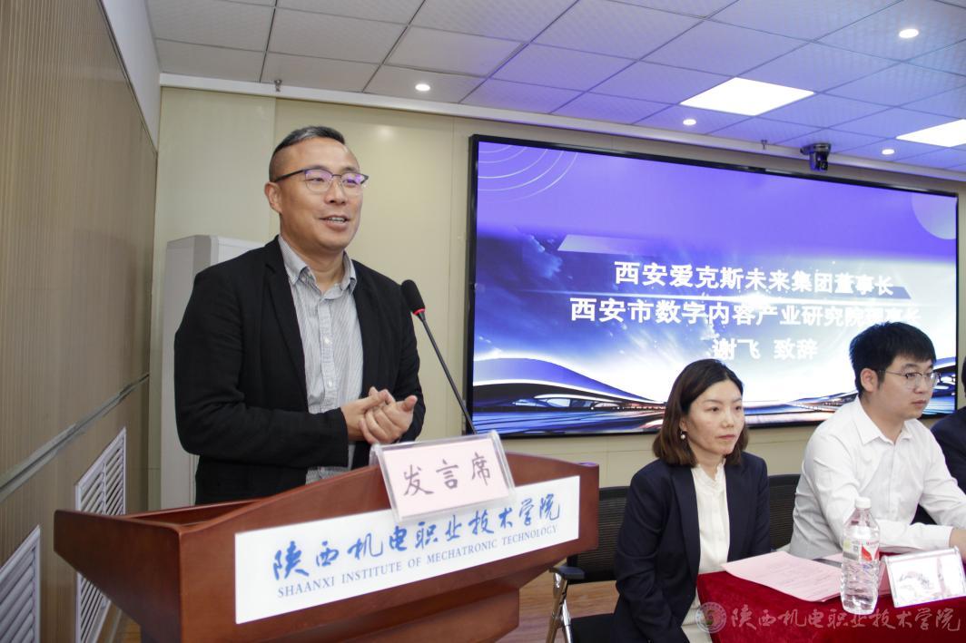 西安愛(ài)克斯未來(lái)集團(tuán)董事長(zhǎng)謝飛在致辭中詳細(xì)介紹了西安市未來(lái)數(shù)字內(nèi)容產(chǎn)業(yè)研究院的相關(guān)情況。他指出,當(dāng)前產(chǎn)業(yè)正面臨人才供需失衡的挑戰(zhàn),行業(yè)對(duì)高素質(zhì)專(zhuān)業(yè)人才的需求尤為迫切。同時(shí)表示,集團(tuán)高度重視與我校的合作,將在人才培養(yǎng)、專(zhuān)業(yè)建設(shè)、技術(shù)服務(wù)以及創(chuàng)新創(chuàng)業(yè)等領(lǐng)域展開(kāi)深度協(xié)同,通過(guò)資源共享與機(jī)制創(chuàng)新,實(shí)現(xiàn)“人才共育、成果共享”,共同推動(dòng)數(shù)字內(nèi)容產(chǎn)業(yè)的高質(zhì)量發(fā)展。