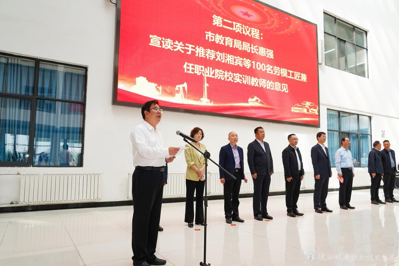 惠強宣讀關(guān)于推薦劉湘賓等100名勞模工匠兼任職業(yè)院校實訓教師的意見