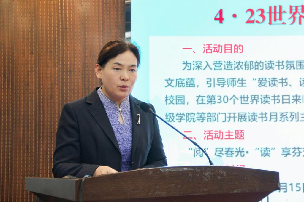 黨委副書記、紀(jì)委書記陳紅梅宣讀《陜西機(jī)電職業(yè)技術(shù)學(xué)院4·23世界讀書日暨第七屆讀書月活動(dòng)方案》。