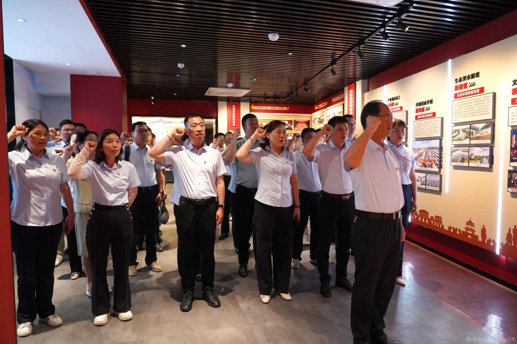 參觀結(jié)束后,全體黨員干部面對黨旗重溫入黨誓詞,這不僅是對入黨初心的深刻回顧,更是一次心靈的黨性洗禮,激勵全體黨員干部“不忘初心、牢記使命”。