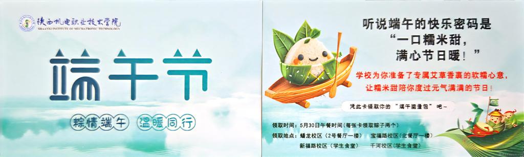 學校提前為同學們定制了精美的粽子領取卡,卡片設計別致,承載著濃濃的節(jié)日祝福。這份“端午能量包”不僅滿足了大家的味蕾,更讓溫暖在校園里悄然蔓延。希望通過這份小小的禮物,讓同學們在校園中也能感受到家的溫馨和節(jié)日的濃厚氛圍。