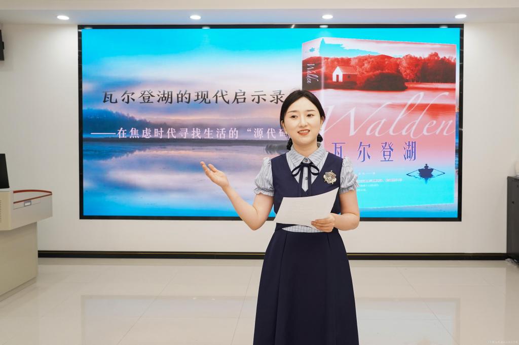 現(xiàn)場氣氛緊張有序,選手們或慷慨激昂,或娓娓道來,每一個細節(jié)都牽動著評委和觀眾的心。一號選手董妍以史鐵生《我與地壇》為載體,在沉靜有力的敘述中探討生命的堅韌與價值;二號選手武小元通過對《瓦爾登湖》的獨到詮釋,將梭羅的自然哲學與當代生態(tài)文明建設深刻聯(lián)結(jié);三號選手郭陽深情講述《苦難輝煌》,將軍旅生涯的信仰堅守與工會工作者的責任擔當娓娓道來;四號選手黃曉璐借《敦煌本紀》繪就一幅文化守護的壯美畫卷,展現(xiàn)莫高窟精神與教育使命的共鳴;五號選手楊穎則從《蛤蟆先生去看心理醫(yī)生》出發(fā),用溫暖專業(yè)的語言剖析現(xiàn)代人的心理困境與成長。每位選手都以獨特的視角和飽滿的熱情,贏得了現(xiàn)場觀眾的陣陣掌聲。