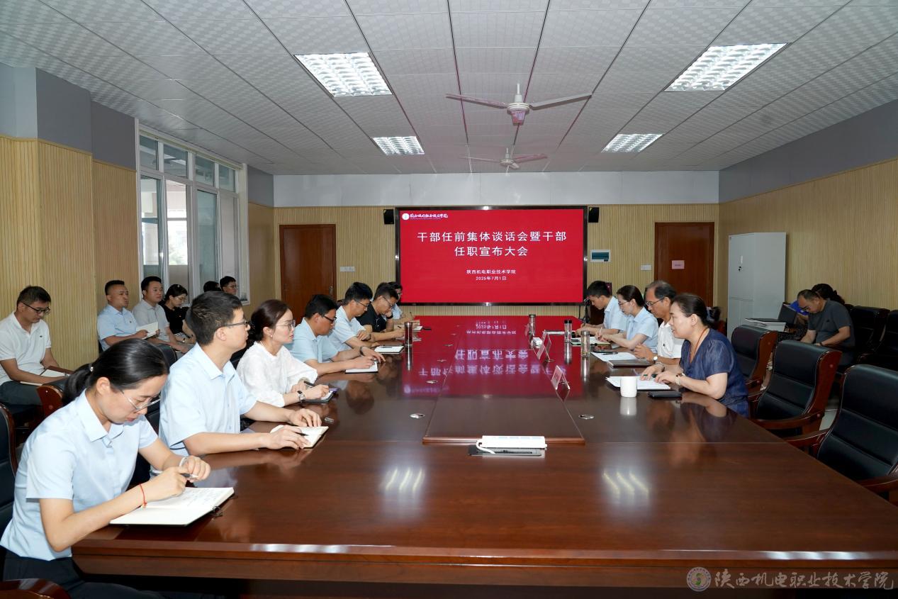 為貫徹新時(shí)代黨的組織路線、持續(xù)加強(qiáng)學(xué)校干部隊(duì)伍建設(shè),7月1日上午,學(xué)校黨委在蟠龍校區(qū)圖書(shū)館二樓會(huì)議室召開(kāi)干部任前集體談話暨干部任職宣布大會(huì)。黨委書(shū)記伊遜智出席會(huì)議并講話。黨委副書(shū)記、紀(jì)委書(shū)記陳紅梅,黨委委員、院長(zhǎng)助理、組織部部長(zhǎng)趙爭(zhēng)東,新任職干部所在部門科級(jí)以上干部、教研室主任參加會(huì)議。會(huì)議由黨委副書(shū)記張琴同志主持。