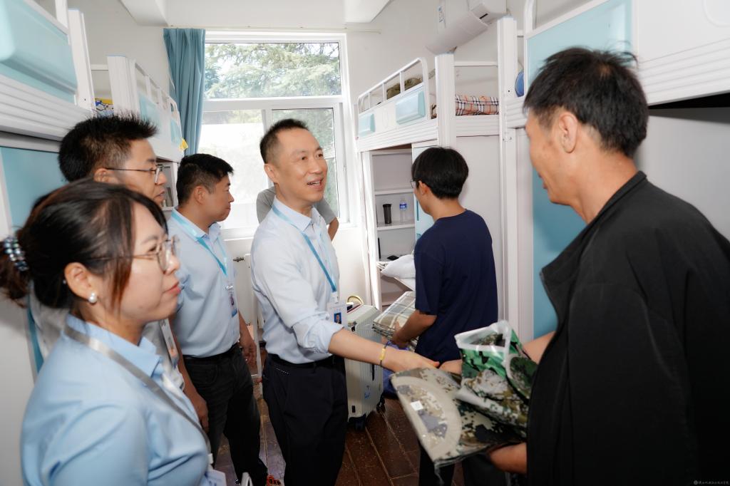 報(bào)到期間,校領(lǐng)導(dǎo)分組前往各校區(qū),走訪檢查迎新點(diǎn)各項(xiàng)工作開展情況,慰問(wèn)全體迎新工作人員和學(xué)生志愿者。校園里、公寓內(nèi),校領(lǐng)導(dǎo)與學(xué)生及家長(zhǎng)親切交流,“同學(xué),你來(lái)自哪里?”“對(duì)學(xué)校環(huán)境還滿意嗎?”一句句親切的問(wèn)候、真誠(chéng)的交流拉近了學(xué)校與學(xué)生及家長(zhǎng)之間的距離,讓新生和家長(zhǎng)倍感溫暖和安心。