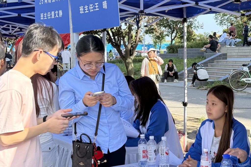 “同學(xué),請(qǐng)打開‘今日校園’,點(diǎn)擊‘移動(dòng)迎新’,你的報(bào)到手續(xù)就完成了……”以賈詩(shī)哲為代表的學(xué)生志愿者分組指導(dǎo)新生進(jìn)行線上報(bào)到?,F(xiàn)場(chǎng),各二級(jí)學(xué)院黨政領(lǐng)導(dǎo)干部,輔導(dǎo)員、班主任、團(tuán)學(xué)干部情緒高漲,為現(xiàn)場(chǎng)新生及家長(zhǎng)做好報(bào)到服務(wù)工作。迎新現(xiàn)場(chǎng),熱鬧非凡,到處洋溢著青春的氣息。