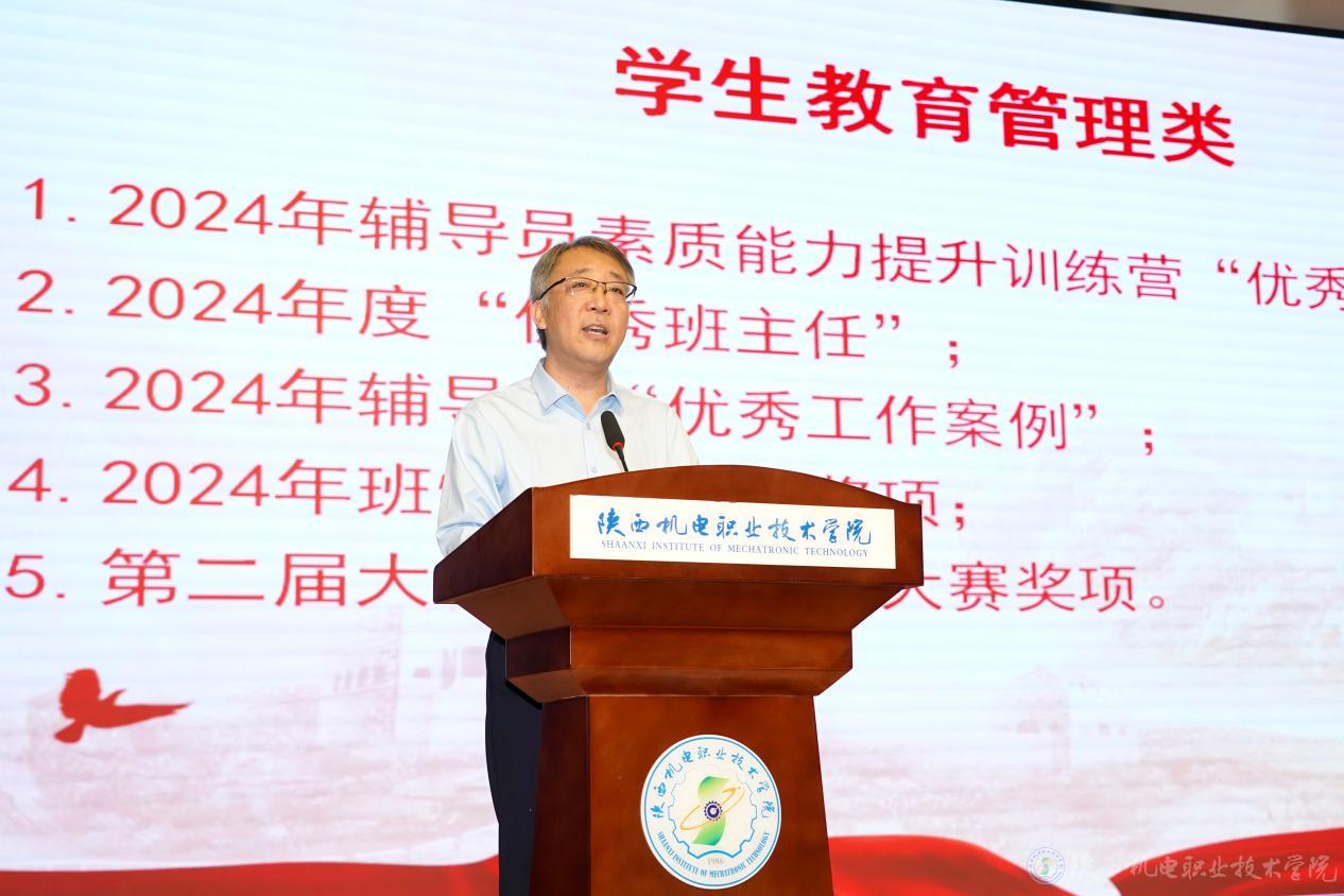 學生處處長王建斌宣讀2024年輔導員素質(zhì)能力提升訓練營“優(yōu)秀學員”、2024年度“優(yōu)秀班主任”、2024年輔導員“優(yōu)秀工作案例”、2024年班情熟知大賽獎項、第二屆大學生職業(yè)規(guī)劃大賽獎項表彰文件。
