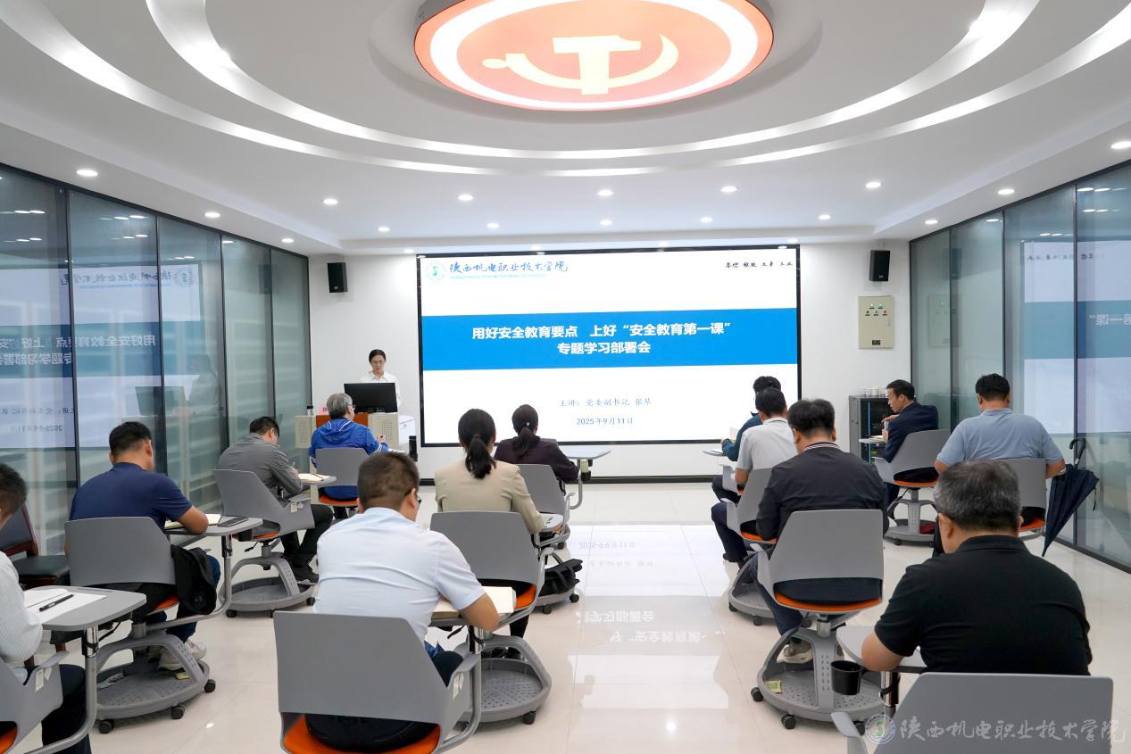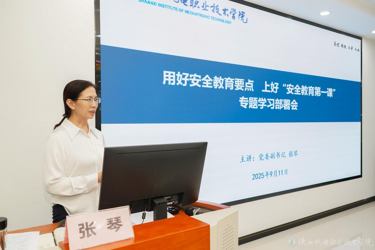 在開學(xué)之際,為進一步提高安全教育的針對性和可操作性,用好高校安全教育要點(2025年),深入貫徹落實省委教育工委文件要求,9月11日上午,陜西機電職業(yè)技術(shù)學(xué)院在蟠龍校區(qū)大思政教育中心會議室召開專題學(xué)習(xí)部署會。黨委副書記張琴給全校相關(guān)部門上“安全教育第一課”。