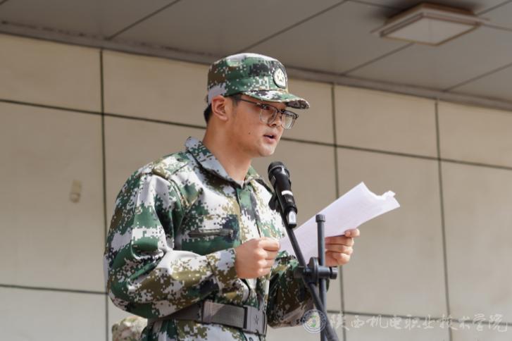 黨委學(xué)工部部長(zhǎng)、學(xué)生處處長(zhǎng)、人武部部長(zhǎng)王建斌宣讀軍訓(xùn)團(tuán)編制、任命及軍訓(xùn)管理規(guī)定