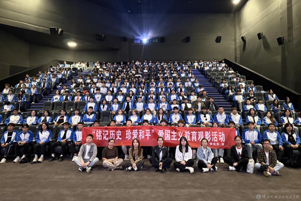 為紀(jì)念中國(guó)人民抗日戰(zhàn)爭(zhēng)暨世界反法西斯戰(zhàn)爭(zhēng)勝利80周年,進(jìn)一步弘揚(yáng)愛(ài)國(guó)主義精神,引導(dǎo)廣大青年學(xué)子銘記歷史、砥礪強(qiáng)國(guó)之志,9月18日,陜西機(jī)電職業(yè)技術(shù)學(xué)院精心組織師生代表開(kāi)展“銘記歷史 珍愛(ài)和平”愛(ài)國(guó)主義教育觀影活動(dòng)。
