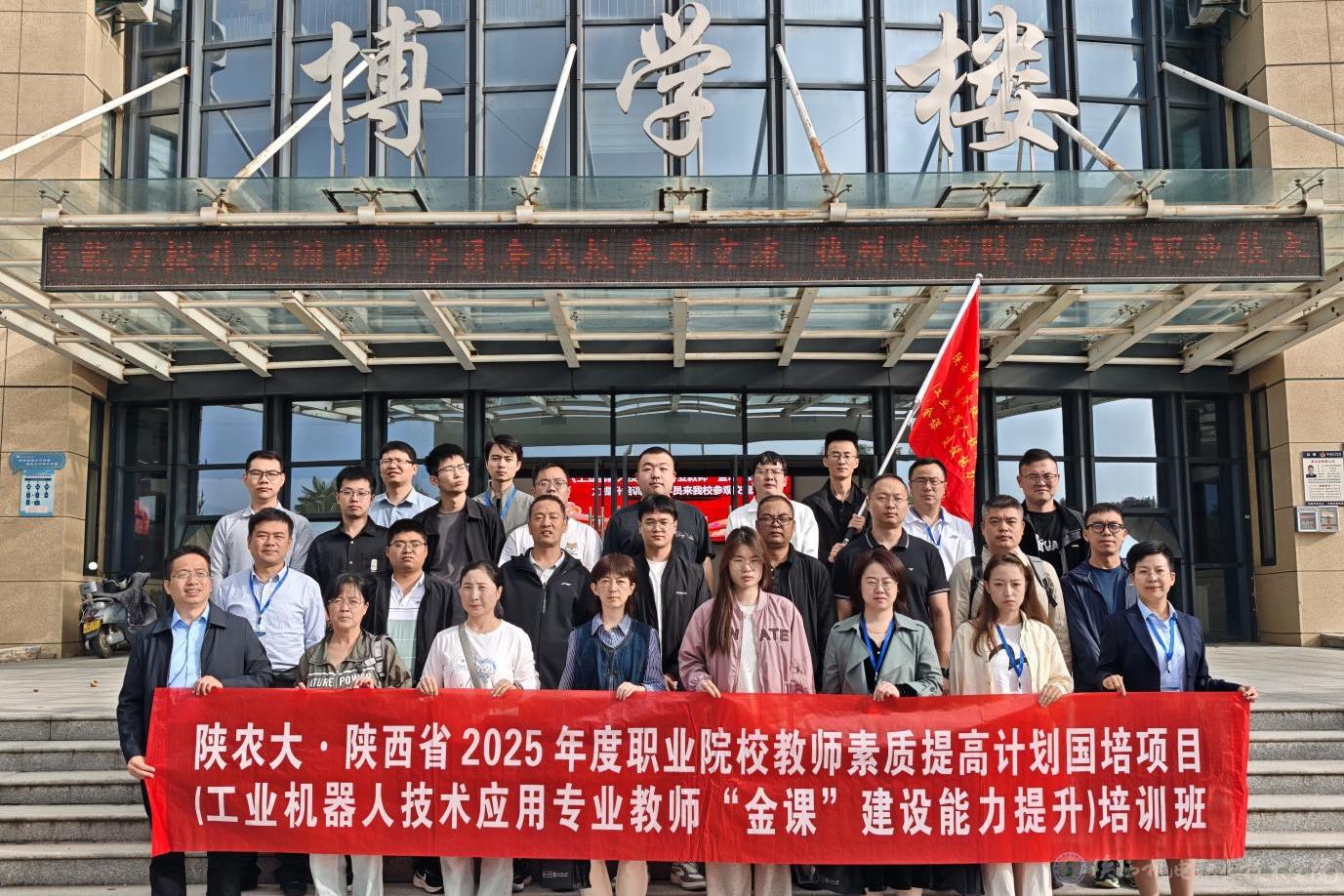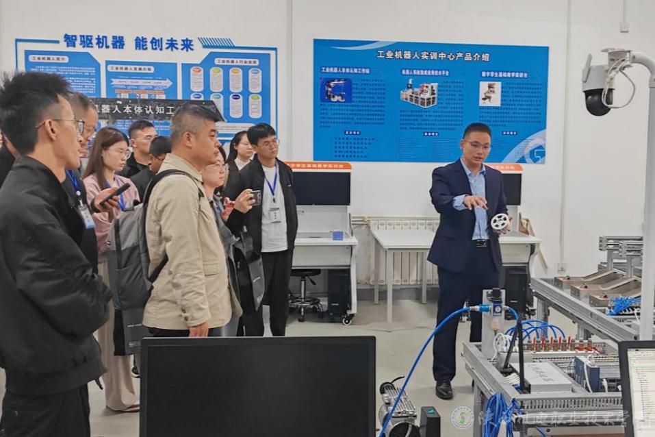 9月24日上午,陜西農(nóng)林職業(yè)技術(shù)大學(xué)工業(yè)機(jī)器人技術(shù)應(yīng)用專業(yè)教師“金課”建設(shè)能力提升培訓(xùn)班(國(guó)培班)組織30名來(lái)自全省各地的中職教師到陜西機(jī)電職業(yè)技術(shù)學(xué)院蟠龍校區(qū)開(kāi)展工業(yè)機(jī)器人理實(shí)一體化課程教學(xué)觀摩與培訓(xùn)活動(dòng)。活動(dòng)旨在深化校際教學(xué)經(jīng)驗(yàn)交流,提升我省中職教師工業(yè)機(jī)器人理實(shí)一體化課程教學(xué)水平。