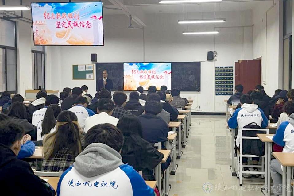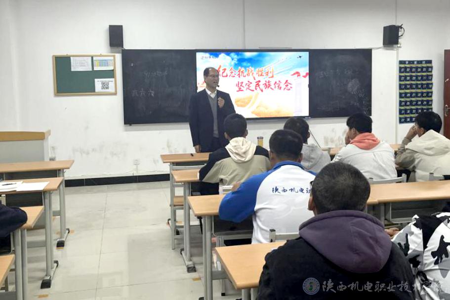 10月16日上午,陜西機(jī)電職業(yè)技術(shù)學(xué)院黨委書記伊遜智在博學(xué)樓218教室為25電氣技術(shù)3、25電氣技術(shù)4合班學(xué)生講授形勢(shì)與政策課《紀(jì)念抗戰(zhàn)勝利 堅(jiān)定民族信念》專題內(nèi)容。