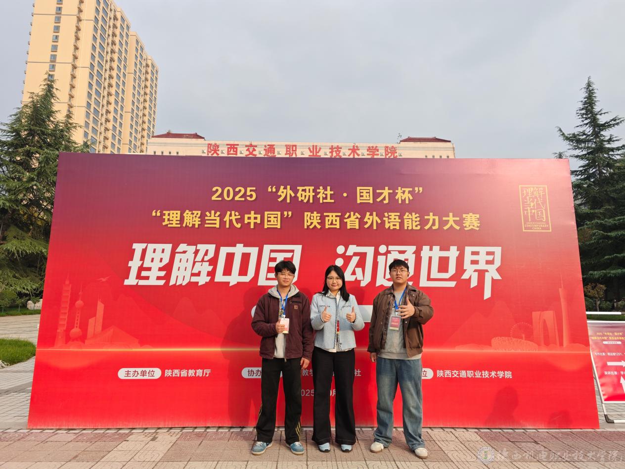 10月25日至26日,2025“外研社·國才杯”“理解當(dāng)代中國”陜西省外語能力大賽(高職組)在陜西交通職業(yè)技術(shù)學(xué)院盛大舉行。陜西機(jī)電職業(yè)技術(shù)學(xué)院24大數(shù)據(jù)2班蔣璐微(指導(dǎo)教師:王春寧)榮獲寫作賽項(xiàng)一等獎(jiǎng),24機(jī)械制造2班穆向陽(指導(dǎo)教師:周毅)和23機(jī)電技術(shù)2班楊燦(指導(dǎo)教師:宋冰心)雙雙榮獲寫作賽項(xiàng)三等獎(jiǎng)。