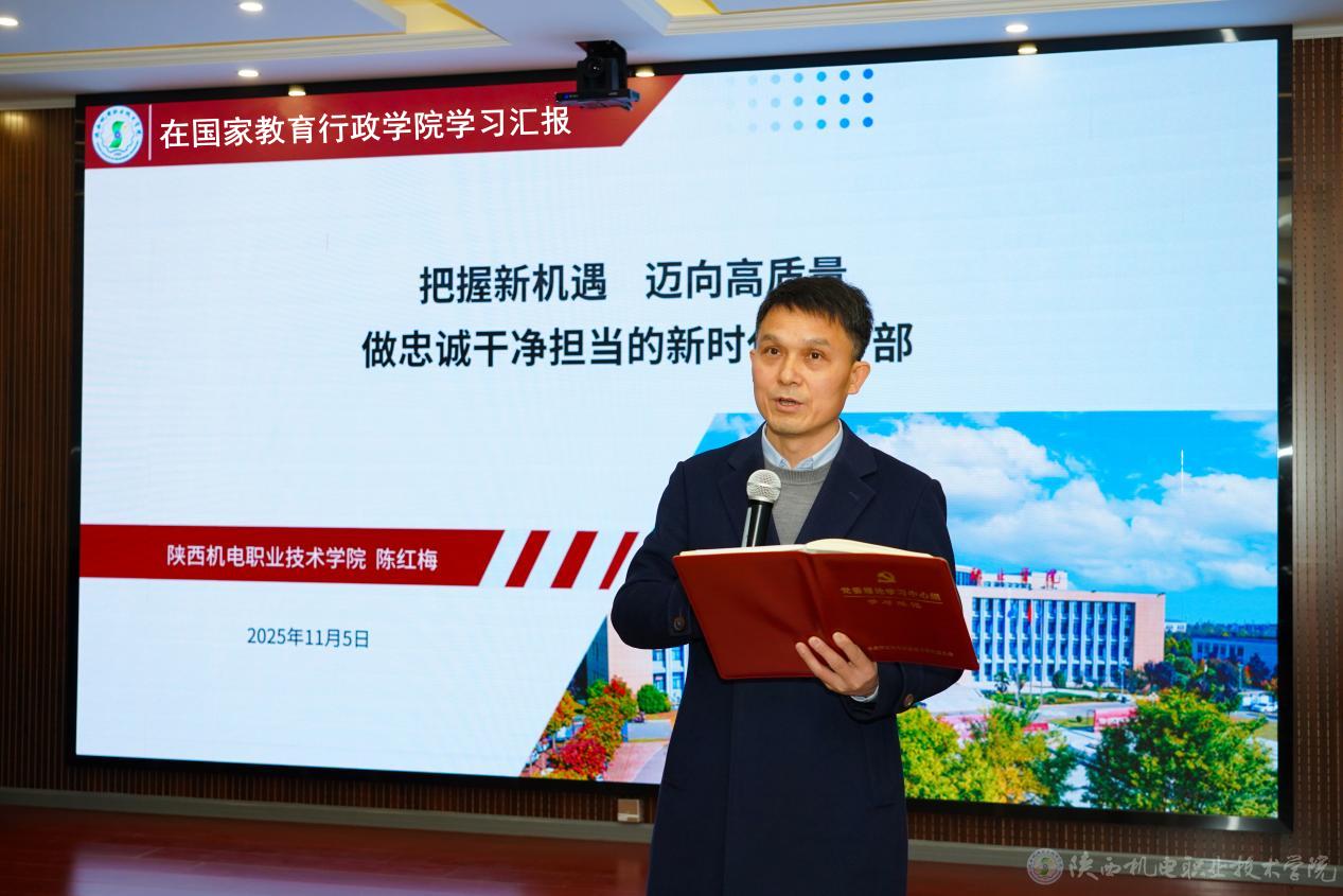 陳紅梅同志從“登高望遠(yuǎn):把握職業(yè)教育改革發(fā)展的總體形勢(shì)與戰(zhàn)略方向、他山之石:學(xué)習(xí)優(yōu)秀院校的創(chuàng)新實(shí)踐與深刻啟示、實(shí)干篤行:以隊(duì)伍之‘強(qiáng)’引領(lǐng)學(xué)院之‘興’三個(gè)方面,精準(zhǔn)解讀了國(guó)家的職教政策,分享了全國(guó)先進(jìn)兄弟院校高質(zhì)量發(fā)展的成功經(jīng)驗(yàn),回答了學(xué)校干部如何把外校的經(jīng)驗(yàn)轉(zhuǎn)化為我們陜機(jī)電的生動(dòng)實(shí)踐,能做什么,該怎么干。