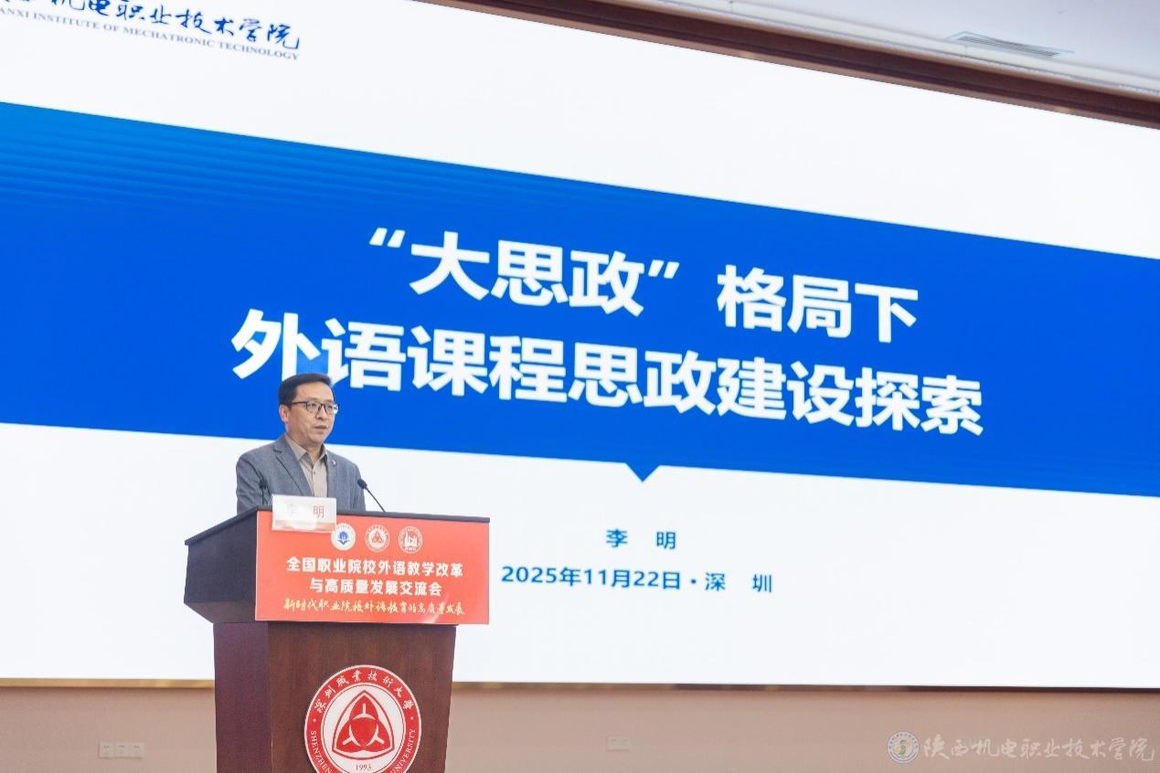 11月21日—23日,全國職業(yè)院校外語教學改革與高質(zhì)量發(fā)展研討會在深圳舉行。陜西機電職業(yè)技術(shù)學院基礎部副部長李明副教授受邀參會作主旨報告并主持專題論壇會議。