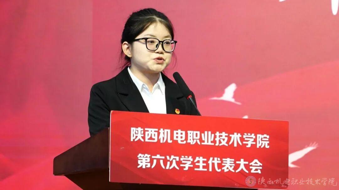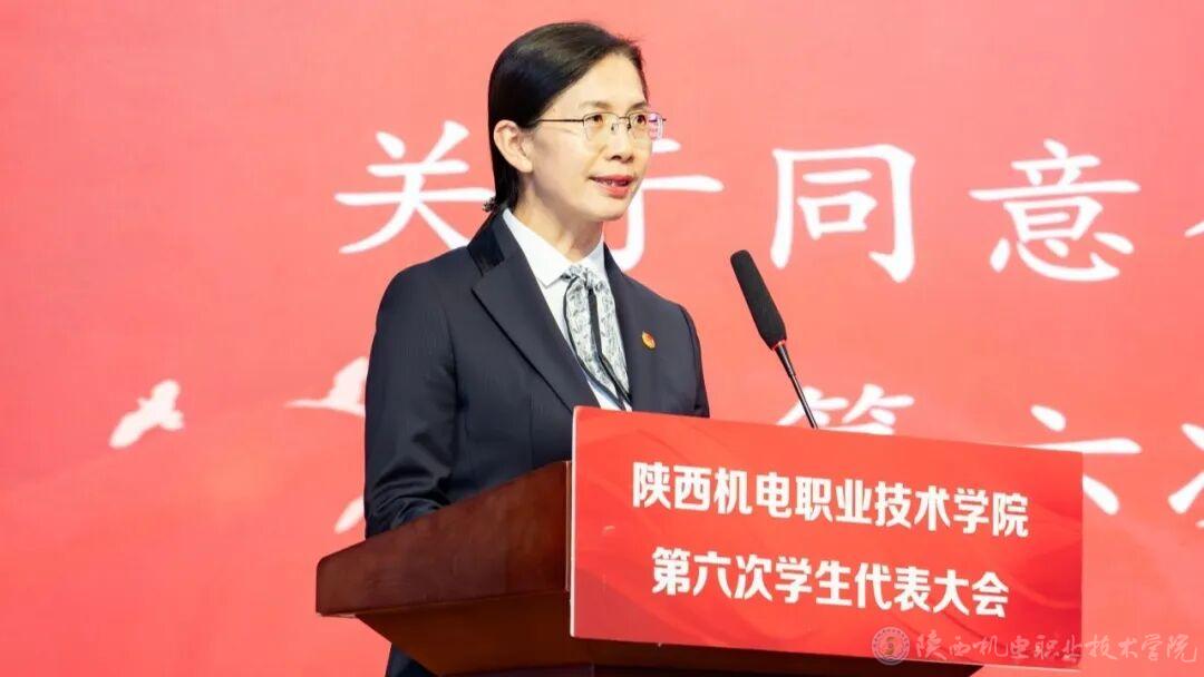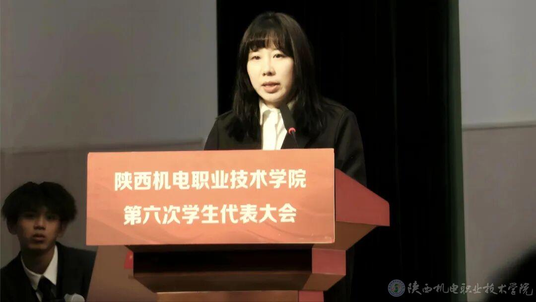 第二項,張琴宣讀《關(guān)于同意召開陜西機(jī)電職業(yè)技術(shù)學(xué)院第六次學(xué)生代表大會的批復(fù)》。