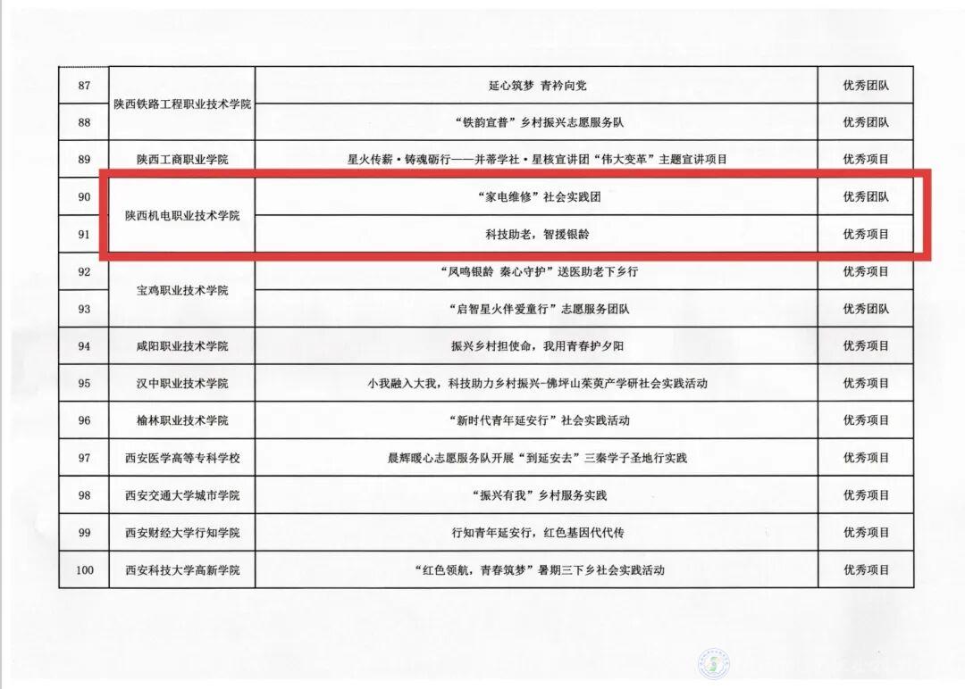 近日,共青團陜西省教育工作委員會發(fā)布《關于2025年度“小我融入大我,青春獻給祖國”高校師生主題社會實踐項目擬表揚對象的公示》。陜西機電職業(yè)技術學院憑借扎實的實踐成果脫穎而出,“家電維修”社會實踐團成功獲評“優(yōu)秀團隊”;“科技助老,智援銀齡”成功獲評“優(yōu)秀項目” 稱號。