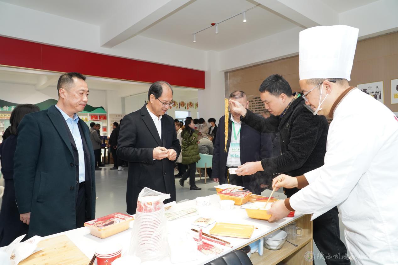 下午,與會(huì)人員參觀了陜西西鳳酒股份有限公司、陜西雜八得食品有限公司、寶雞市搟面皮發(fā)展促進(jìn)會(huì)、寶雞搟面皮產(chǎn)業(yè)學(xué)院,品鑒了寶雞搟面皮、柳州螺螄粉、宜賓燃面、湖南平江辣條等特色美食。