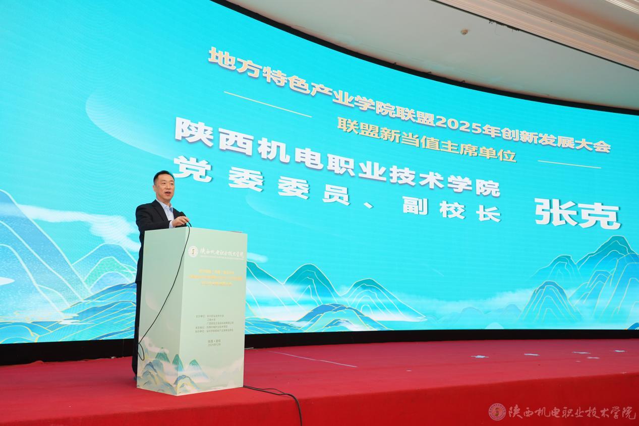 聯(lián)盟新當(dāng)值主席單位——陜西機(jī)電職業(yè)技術(shù)學(xué)院黨委委員、副校長(zhǎng)張克作表態(tài)發(fā)言。他首先對(duì)聯(lián)盟各成員單位的信任與支持表示衷心感謝,并鄭重承諾,作為新任輪值主席單位,學(xué)校將恪盡職守,緊密圍繞聯(lián)盟宗旨,從強(qiáng)化協(xié)同聯(lián)動(dòng)、深化產(chǎn)教融合、推動(dòng)資源共享三個(gè)方面著力,積極搭建高效務(wù)實(shí)的合作平臺(tái),攜手各成員單位共同探索地方特色產(chǎn)業(yè)人才培養(yǎng)的新模式、新路徑,為服務(wù)區(qū)域經(jīng)濟(jì)高質(zhì)量發(fā)展貢獻(xiàn)聯(lián)盟的智慧和力量。