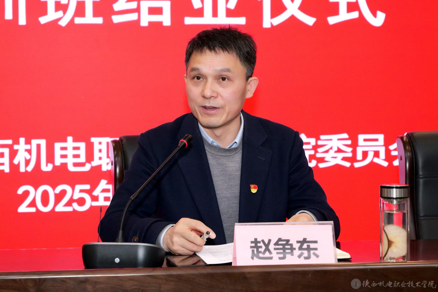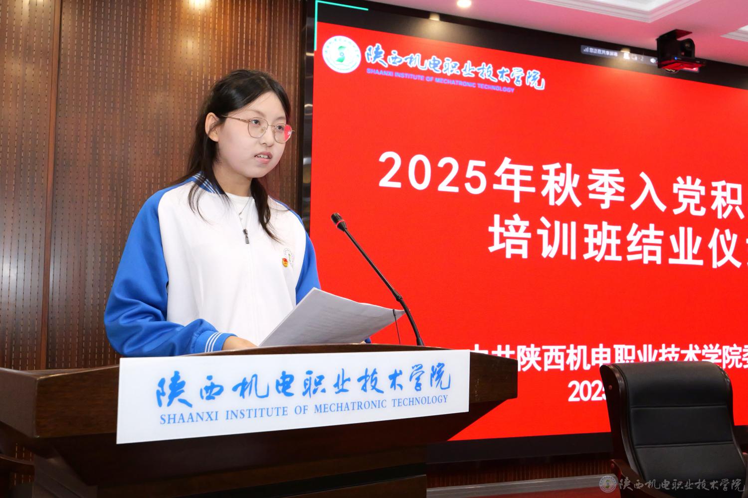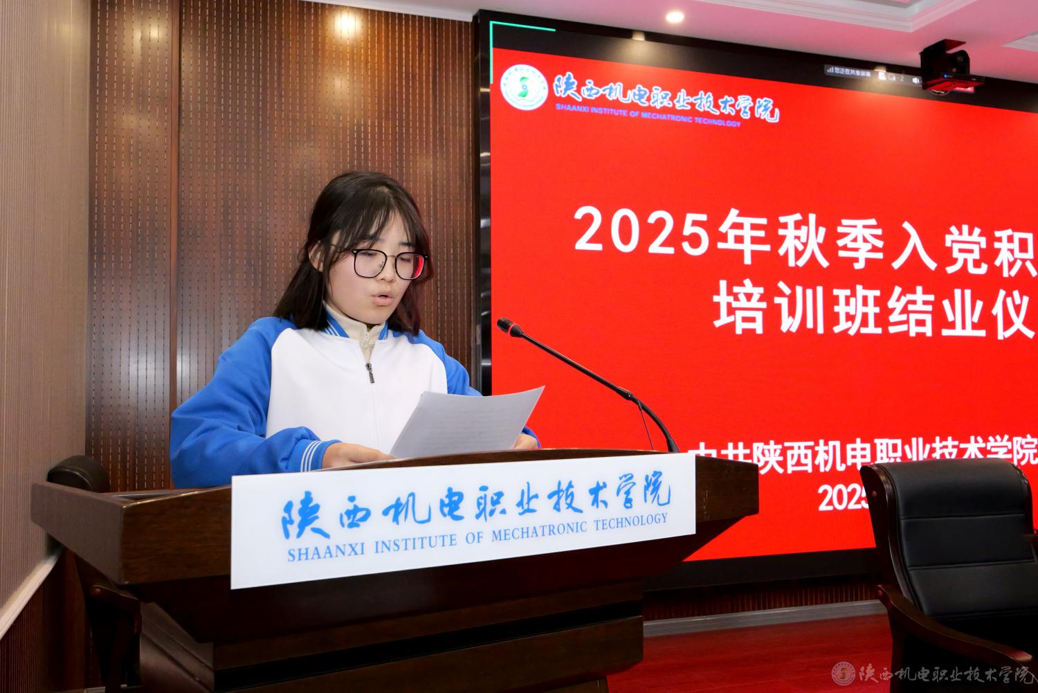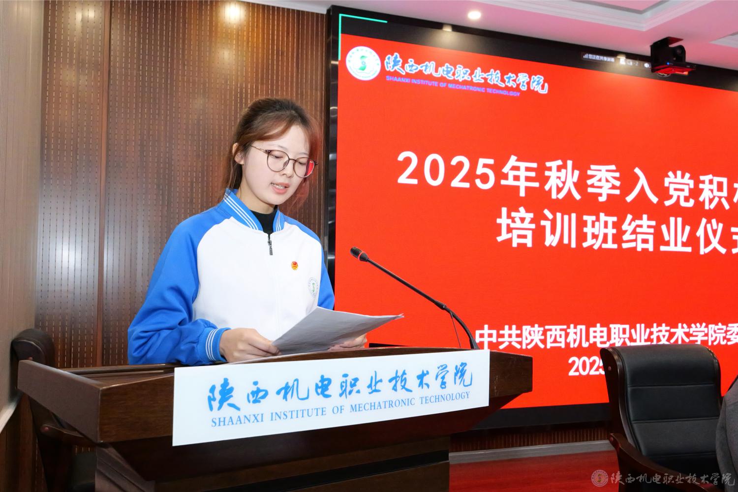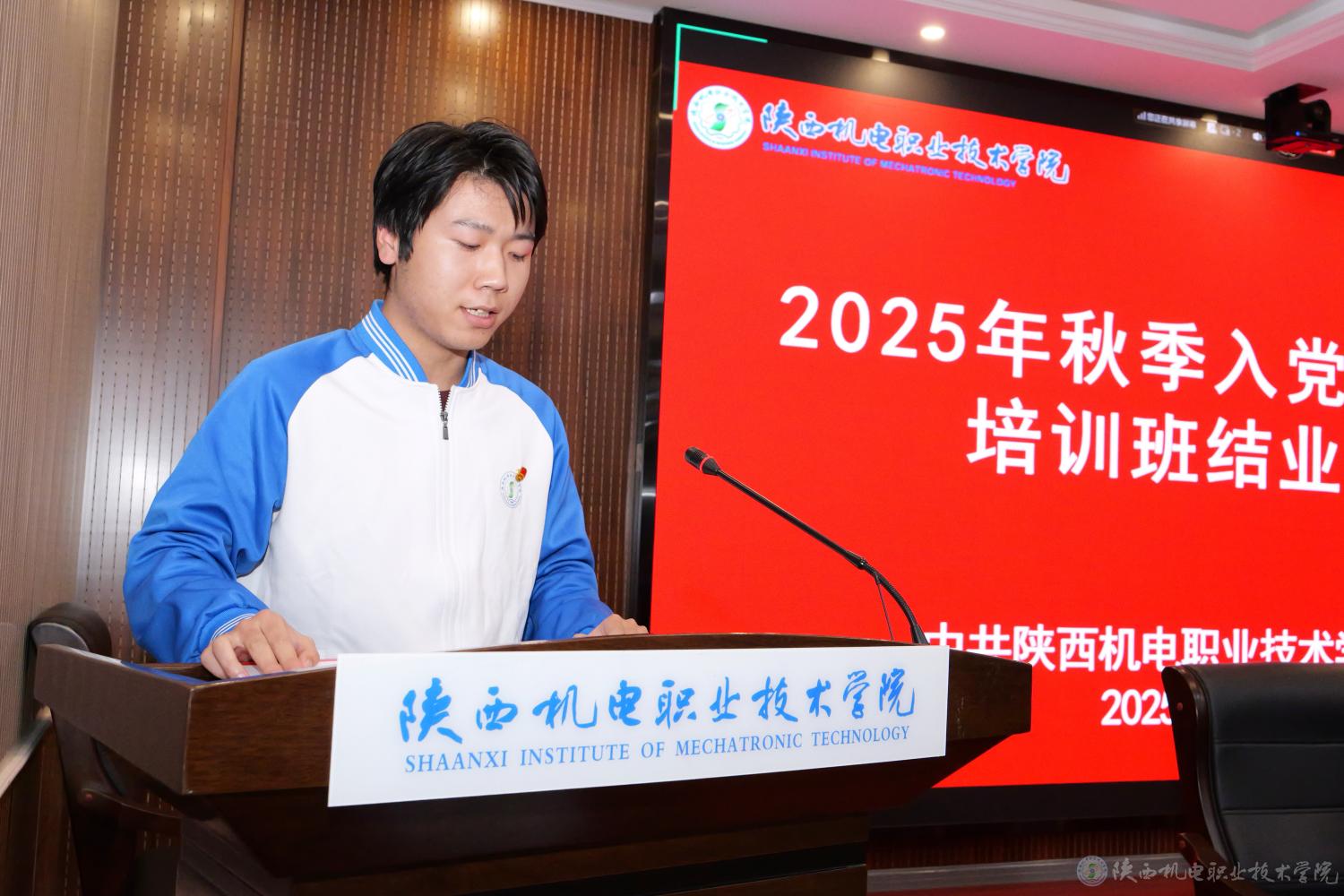 趙爭(zhēng)東同志在講話中總結(jié)了此次培訓(xùn)的特點(diǎn),肯定了培訓(xùn)的成效,對(duì)全體學(xué)員提出了新的要求和期望。他要求全體參訓(xùn)學(xué)員要以此次培訓(xùn)為契機(jī),切實(shí)做到:一是深悟理論精髓,筑牢思想根基;二是堅(jiān)守入黨初心,砥礪純粹品格;三是明晰黨員標(biāo)尺,校準(zhǔn)行動(dòng)方向。希望以此次結(jié)業(yè)為新起點(diǎn),將培訓(xùn)收獲的思想力量、責(zé)任擔(dān)當(dāng),轉(zhuǎn)化為學(xué)習(xí)生活的實(shí)際行動(dòng),在技能成才道路上勇攀高峰,在服務(wù)他人、奉獻(xiàn)社會(huì)中錘煉黨性,早日成為合格共產(chǎn)黨員,為學(xué)校發(fā)展、為實(shí)現(xiàn)中華民族偉大復(fù)興貢獻(xiàn)青春力量!