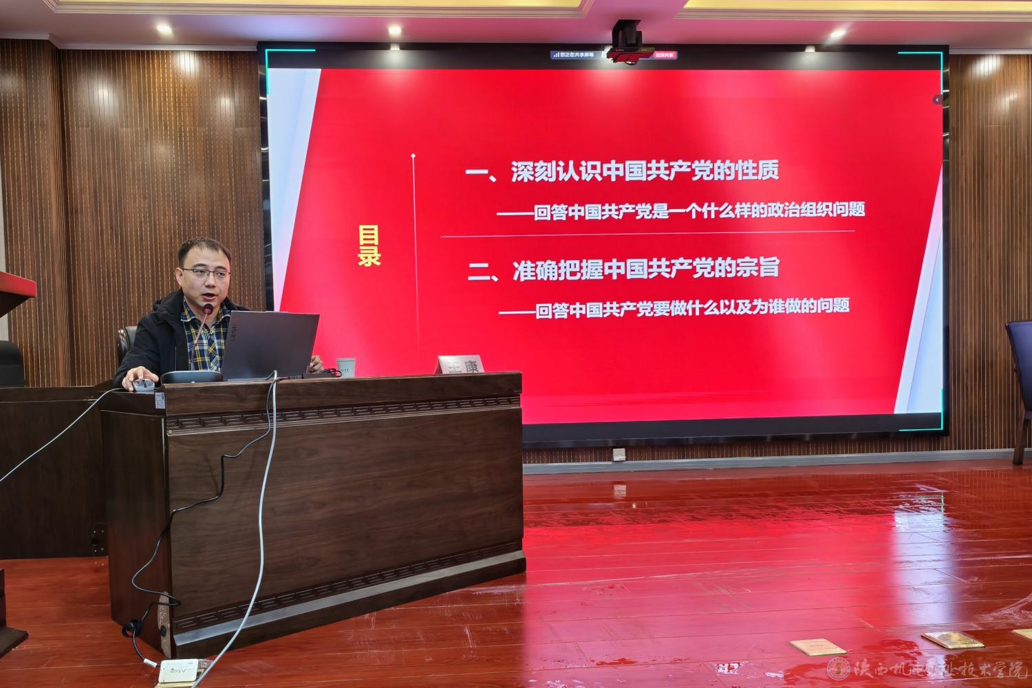 馬克思主義學(xué)院負(fù)責(zé)人王康作題為《中國(guó)共產(chǎn)黨的性質(zhì)和宗旨》的專題報(bào)告。