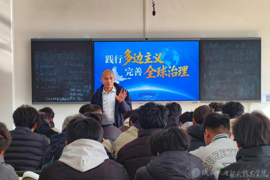 12月26日下午,學(xué)校黨委副書記、校長侯曉方在啟航樓402教室為25機(jī)電技術(shù)5、25機(jī)電技術(shù)6合班學(xué)生講授形勢與政策課《踐行多邊主義 完善全球治理》專題內(nèi)容。