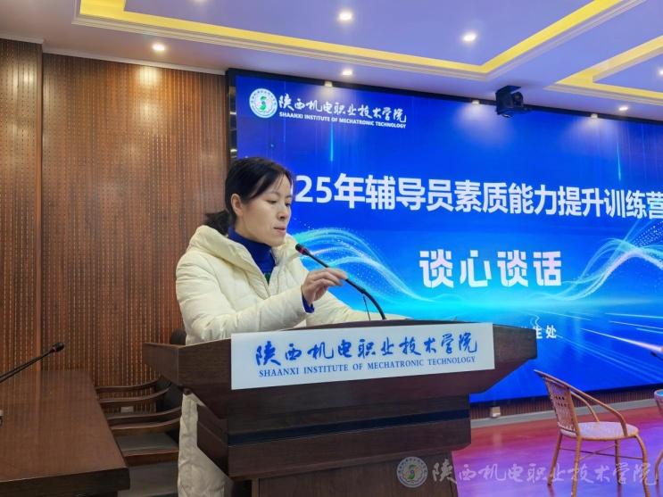 為持續(xù)推動(dòng)輔導(dǎo)員思想政治工作能力提升,賦能輔導(dǎo)員隊(duì)伍專業(yè)化職業(yè)化專家化發(fā)展,陜西機(jī)電職業(yè)技術(shù)學(xué)院于近日舉辦了2025年度輔導(dǎo)員素質(zhì)能力提升訓(xùn)練營(yíng)。黨委副書(shū)記張琴出席,活動(dòng)特邀請(qǐng)寶雞文理學(xué)院、寶雞職業(yè)技術(shù)學(xué)院相關(guān)領(lǐng)導(dǎo)、專家對(duì)訓(xùn)練營(yíng)進(jìn)行現(xiàn)場(chǎng)指導(dǎo),活動(dòng)由學(xué)管科科長(zhǎng)趙靜主持。