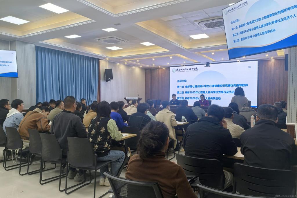 啟動儀式上,對榮獲2025年心理育人宣傳季實踐活動的優(yōu)秀組織單位及先進個人和在第七屆全國大學生心理健康知識網(wǎng)絡答題競賽中表現(xiàn)突出的師生進行表彰,張琴宣布“2026年心理育人宣傳季正式啟動”。