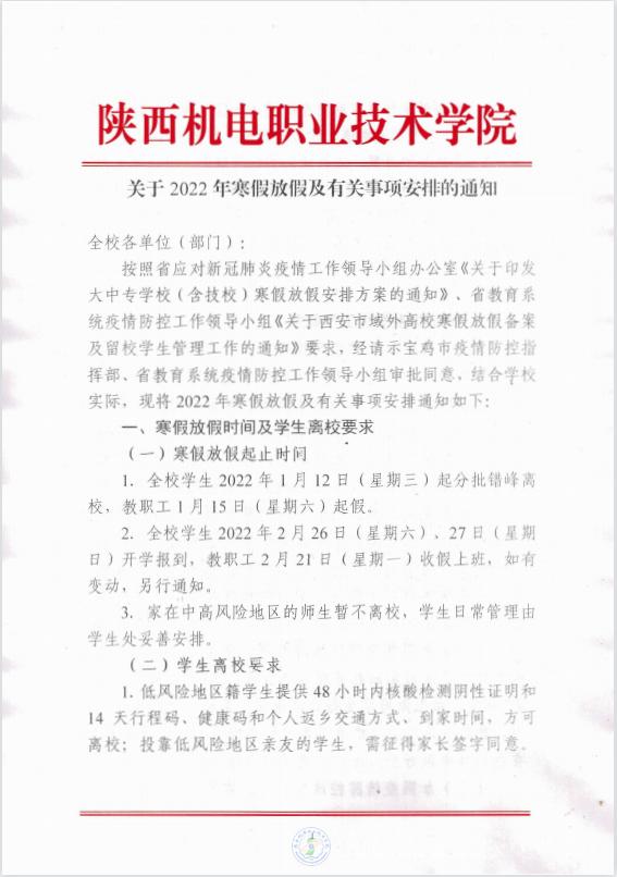 關(guān)于2022年寒假放假及有關(guān)事項(xiàng)安排的通知