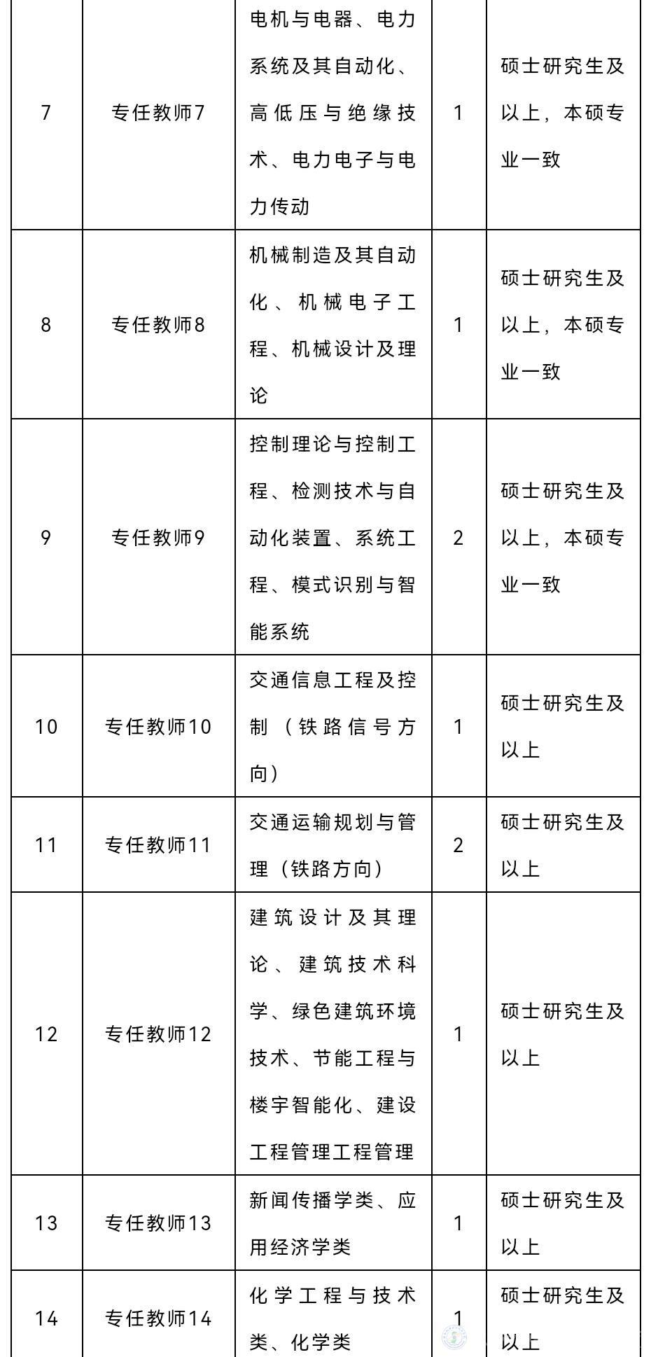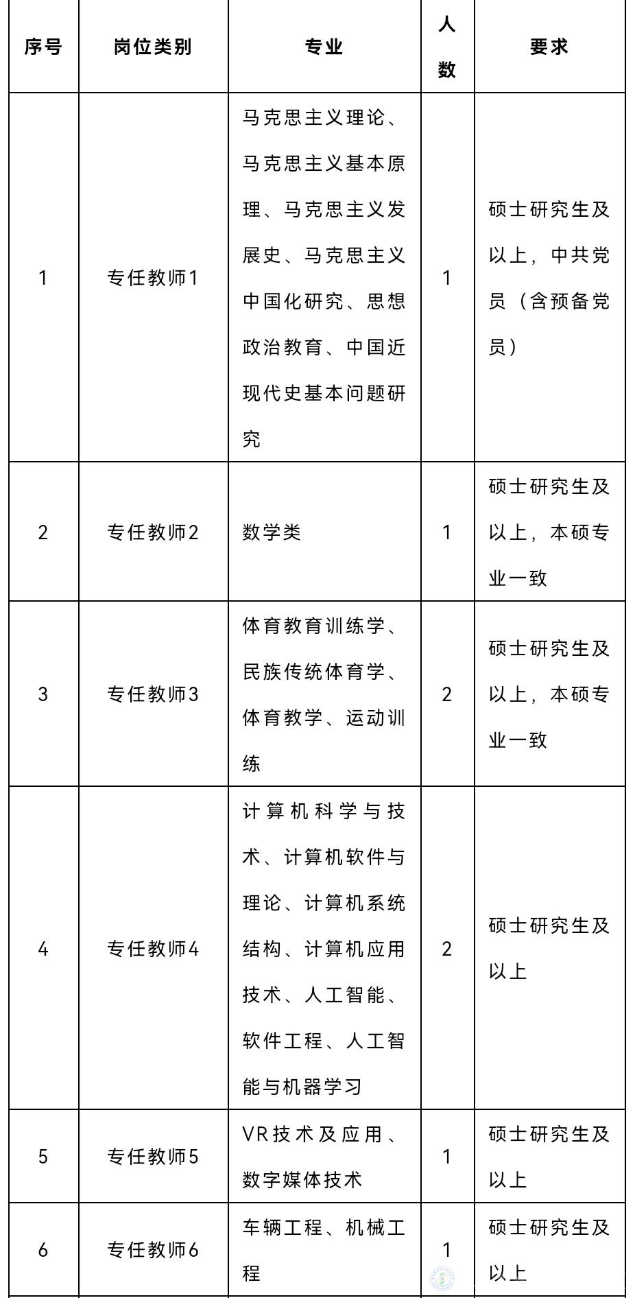 (七)各學(xué)歷階段專業(yè)須一致或相近,有特殊需求的崗位,以各崗位具體要求為準(zhǔn);