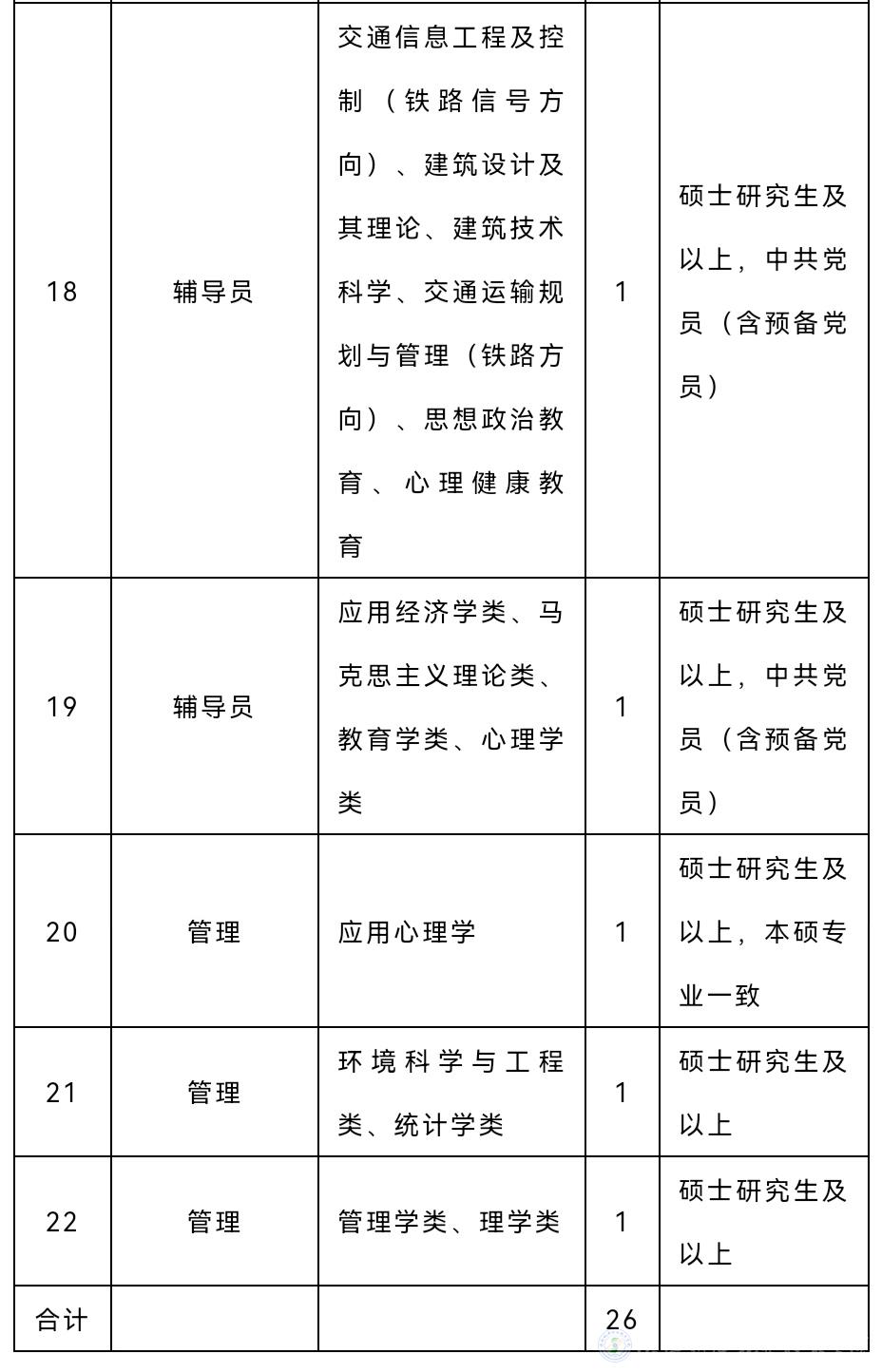 根據(jù)學(xué)校發(fā)展需要,經(jīng)學(xué)校研究,決定2022年面向社會公開招聘全額撥款事業(yè)編制工作人員26名?,F(xiàn)將有關(guān)招聘事項(xiàng)公布如下: