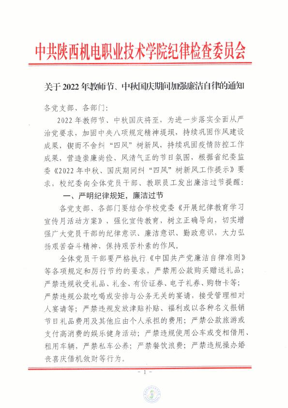 關于2022年教師節(jié)、中秋國慶期間加強廉潔自律的通知
